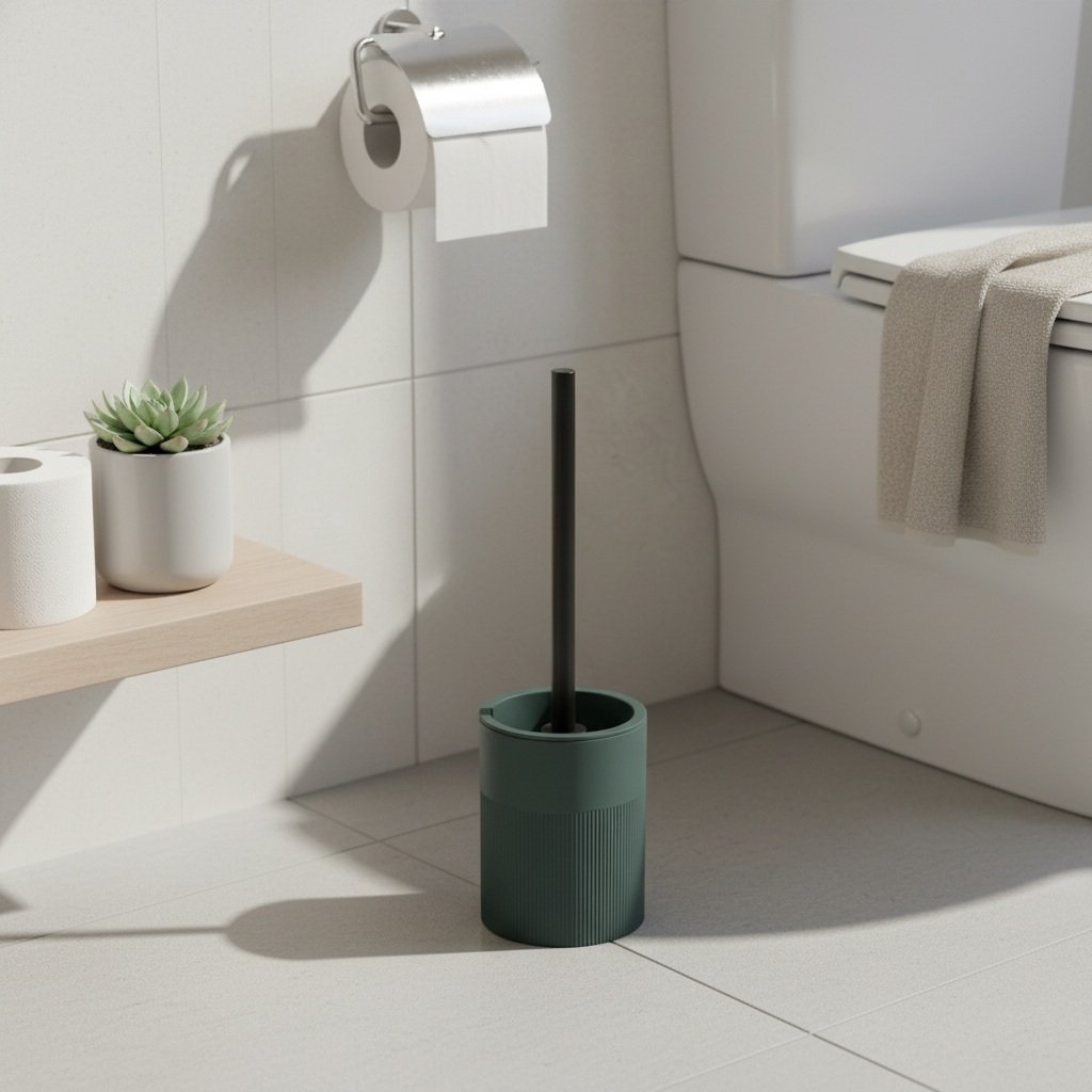 Kvalitné kúpeľňové doplnky v rôznych farbách sa stávajú čoraz obľúbenejšou voľbou pre moderné kúpeľne. WC kefa FRIDA v elegantnej kombinácii zelenej farby a bambusového detailu pôsobí sviežo a štýlovo. Jej dizajn dodáva kúpeľni šmrnc a zároveň môže slúžiť ako dekorácia, ktorá oživí celý priestor. Okrem WC kefy je možné doplniť ďalšie kúpeľňové doplnky zo série FRIDA, ako dávkovač, pohár na kefky, tácku či mydelnička, a vytvoriť tak harmonický set. Tento komplet vám umožní farebne zladiť doplnky s kúpeľňovým textilom, obkladmi alebo dekoráciami a dosiahnuť jednotný a štýlový vzhľad celej kúpeľne.