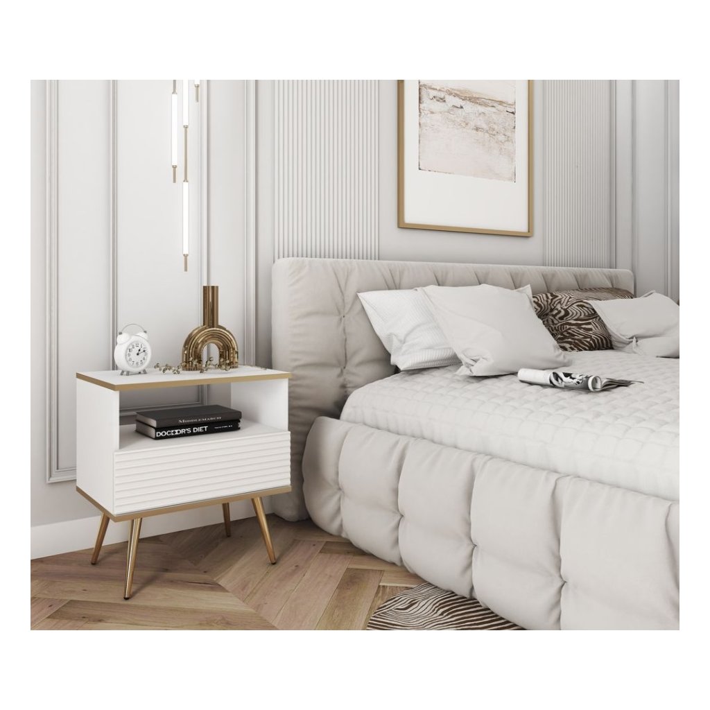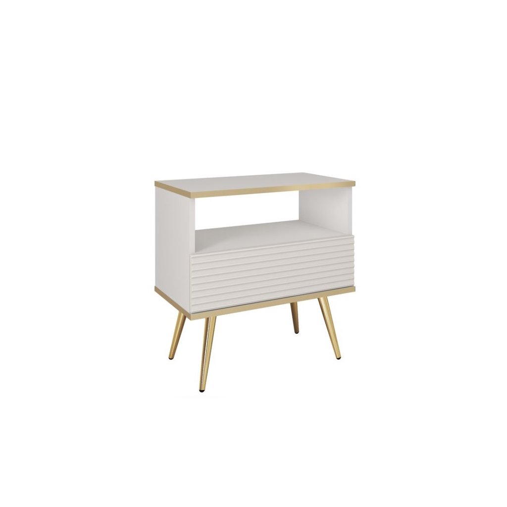 Nočný stolík BIJOU S-547 MDF | biela / zlaté nohy