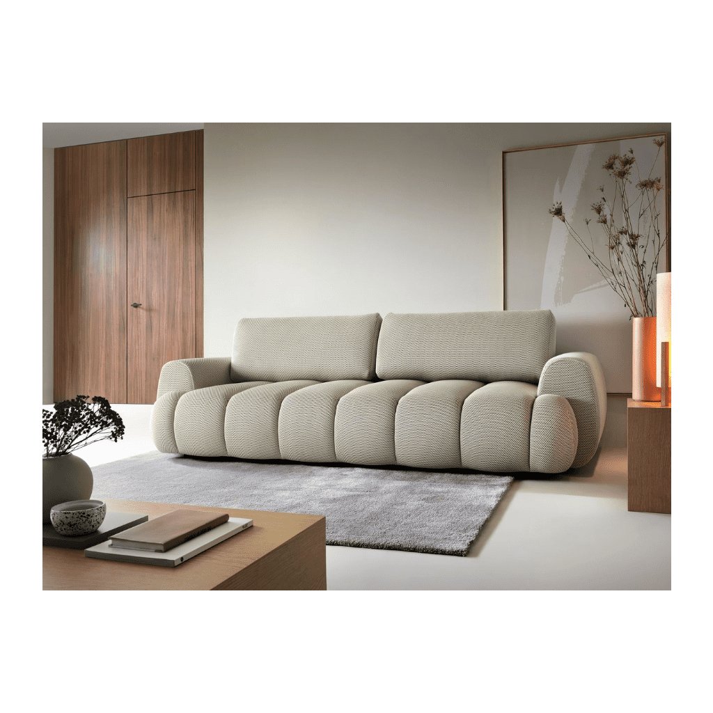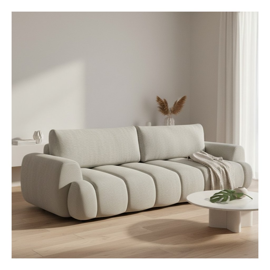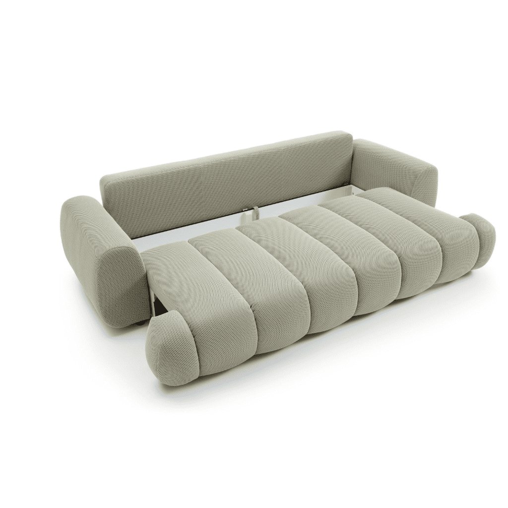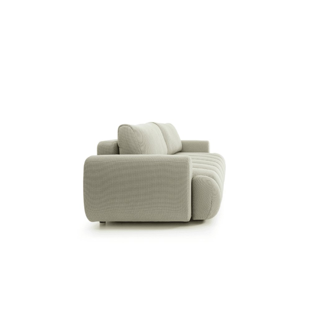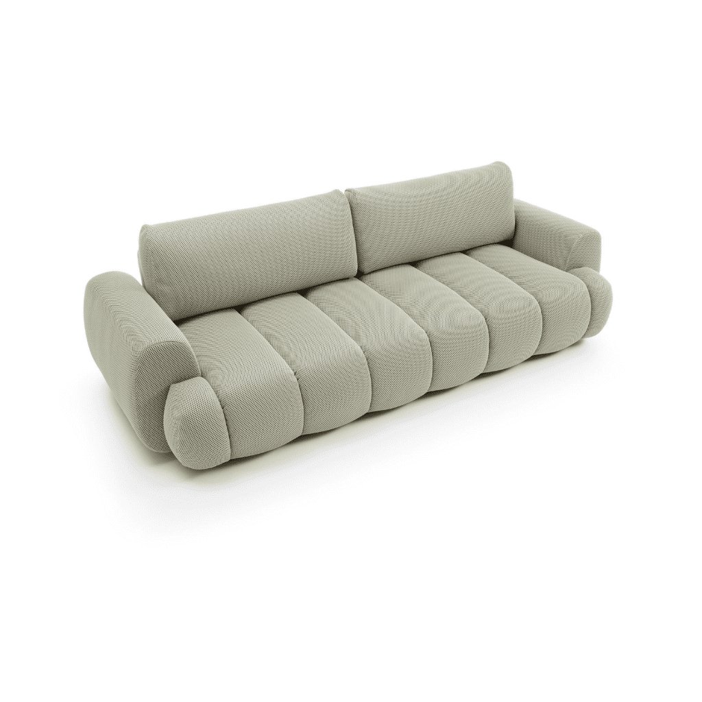Vneste do svojej obývačky nadčasový štýl a maximálne pohodlie s touto modernou pohovkou v dizajnovom čalúnení. Jej jemný svetlý odtieň so sivasto-zeleným podtónom krásne presvetlí interiér a dokonale zapadne do škandinávskeho, minimalistického či moderného štýlu bývania. Pohovka nie je len dizajnovým prvkom – ponúka aj praktickú funkciu rozkladu na pohodlné lôžko. Jednoduchým pohybom vytvoríte miesto na spánok pre hostí, vďaka čomu získate viac flexibility vo vašom bývaní. Súčasťou pohovky je aj veľkorysý úložný priestor, ideálny na uschovanie prikrývok, vankúšov či posteľnej bielizne. Vďaka tomu máte vždy všetko po ruke a vaša obývačka pôsobí upratane a organizovane.