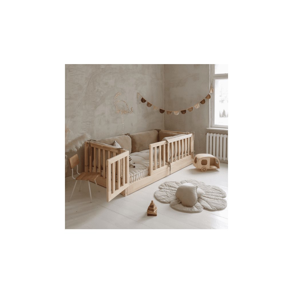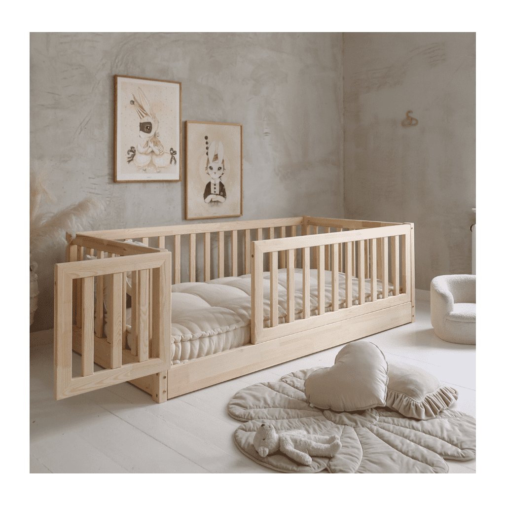 Montessori detská posteľ NATURA je navrhnutá tak, aby poskytovala deťom maximálny komfort, bezpečie a zároveň pôsobila ako štýlový dizajnový prvok v interiéri. Vyrobená je z kvalitného borovicového dreva, ktoré je odolné, ekologické a prináša do priestoru nádych prírody. Ochranné bočnice v kombinácii s praktickými otváracími dvierkami umožňujú jednoduchý prístup, no zároveň zabezpečujú, že dieťa spí v bezpečnom prostredí. Detská posteľ NATURA je ideálnou voľbou pre rodičov, ktorí nechcú robiť kompromisy medzi bezpečím, kvalitou a dizajnom. Vnesie do detskej izby prírodnú harmóniu, exkluzívny vzhľad a vytvorí priestor, kde sa dieťa bude cítiť šťastne a bezpečne. V cene postele je rošt, matrac je možné doobjednať.