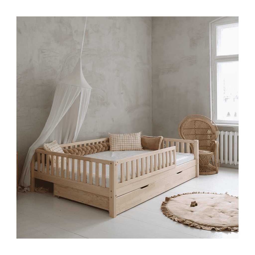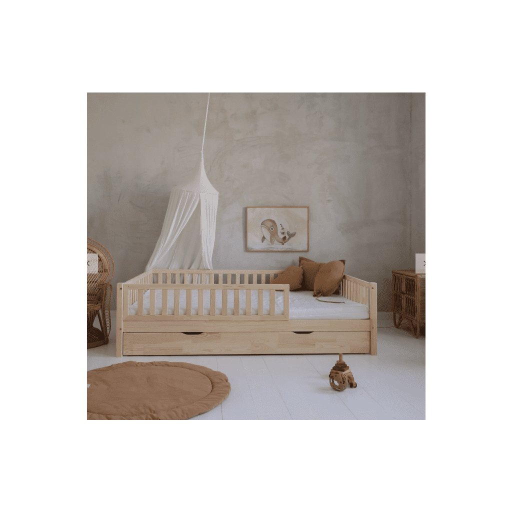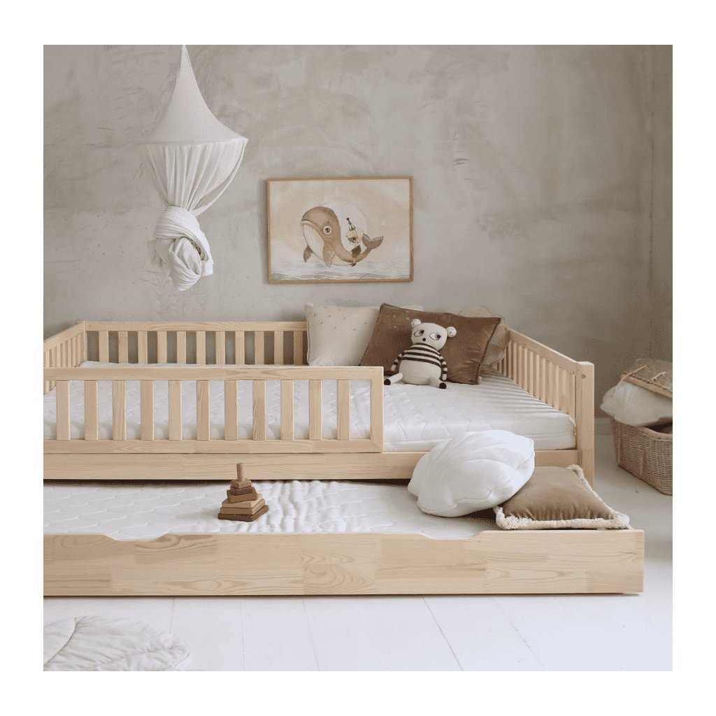 Detská posteľ NUVIO PLUS je prémiovým riešením pre modernú detskú izbu, kde sa spája prírodná krása borovicového dreva s praktickými funkciami. Elegantný dizajn s minimalistickými líniami dodáva interiéru vzdušnosť a útulnosť, zatiaľ čo pevná konštrukcia zabezpečuje bezpečný a pohodlný spánok. Detská posteľ NUVIO PLUS je ideálnou voľbou pre rodičov, ktorí nechcú robiť kompromisy medzi bezpečím, kvalitou a dizajnom. Vnesie do detskej izby prírodnú harmóniu, exkluzívny vzhľad a vytvorí priestor, kde sa dieťa bude cítiť šťastne a bezpečne. Oceníte prístelku, ktorá poskytne ďalšie miesto na spanie. Zábranu je možné namontovať na ľavú alebo pravú stranu postele. V prípade potreby je možné boky postele zdemontovať. V cene postele je rošt, matrac je možné doobjednať.
