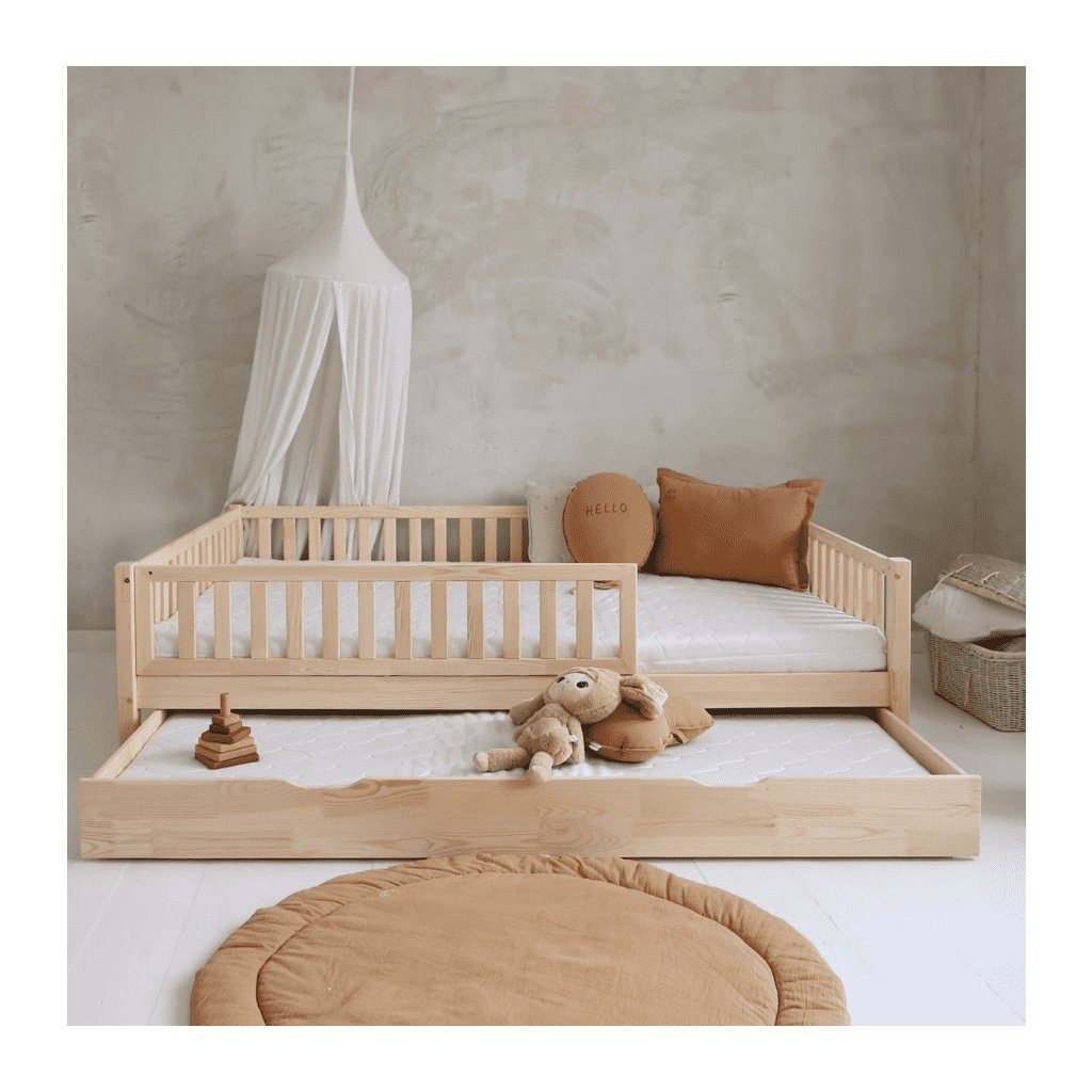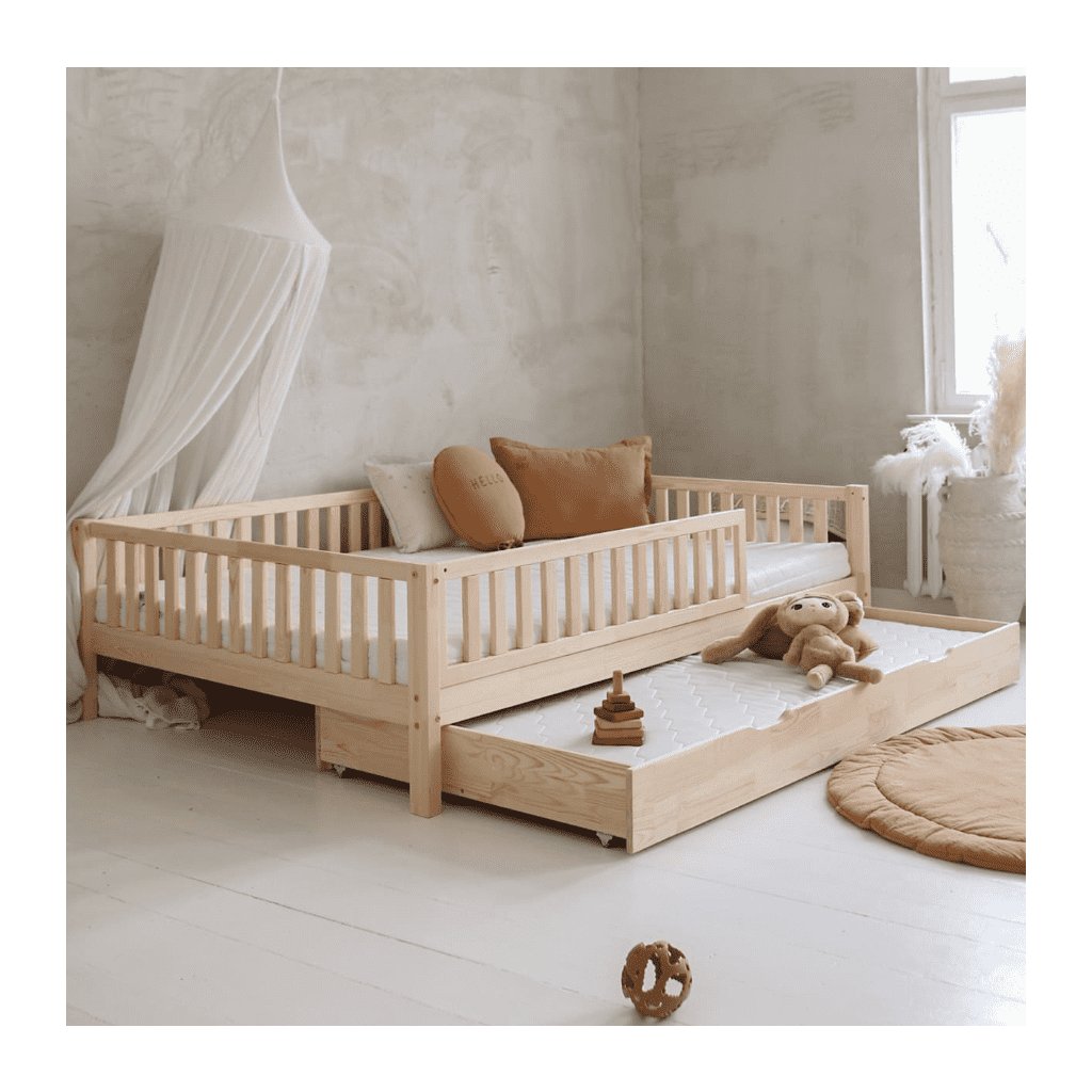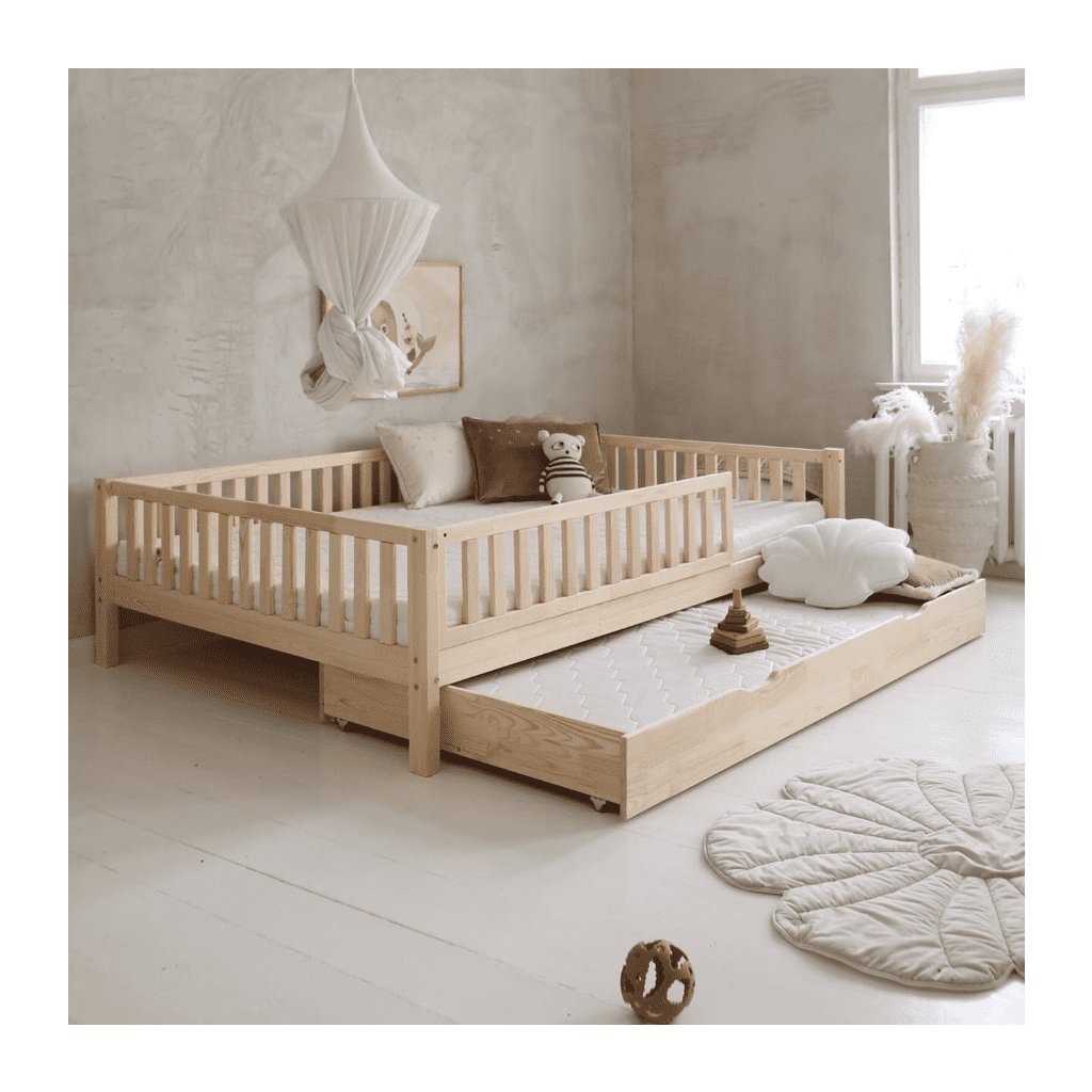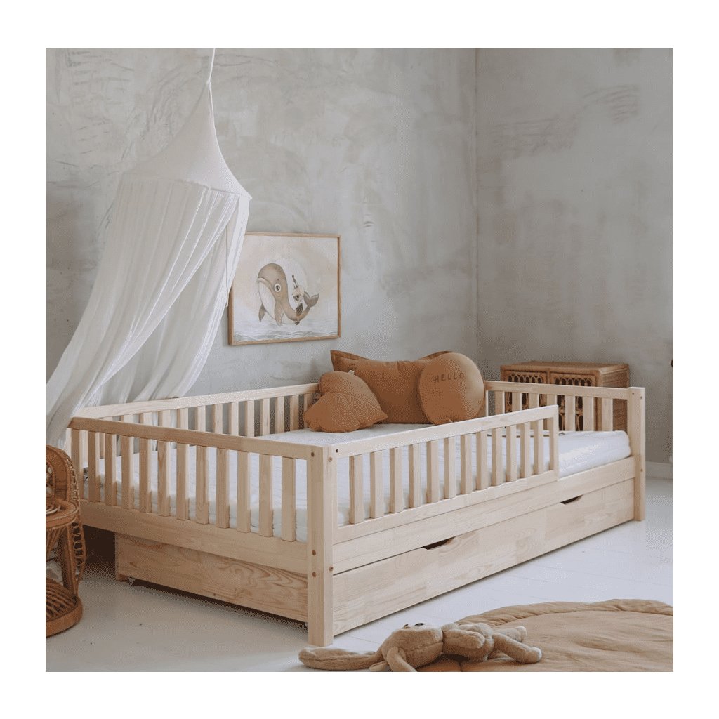 Detská posteľ NUVIO PLUS je prémiovým riešením pre modernú detskú izbu, kde sa spája prírodná krása borovicového dreva s praktickými funkciami. Elegantný dizajn s minimalistickými líniami dodáva interiéru vzdušnosť a útulnosť, zatiaľ čo pevná konštrukcia zabezpečuje bezpečný a pohodlný spánok. Detská posteľ NUVIO PLUS je ideálnou voľbou pre rodičov, ktorí nechcú robiť kompromisy medzi bezpečím, kvalitou a dizajnom. Vnesie do detskej izby prírodnú harmóniu, exkluzívny vzhľad a vytvorí priestor, kde sa dieťa bude cítiť šťastne a bezpečne. Oceníte prístelku, ktorá poskytne ďalšie miesto na spanie. Zábranu je možné namontovať na ľavú alebo pravú stranu postele. V prípade potreby je možné boky postele zdemontovať. V cene postele je rošt, matrac je možné doobjednať.