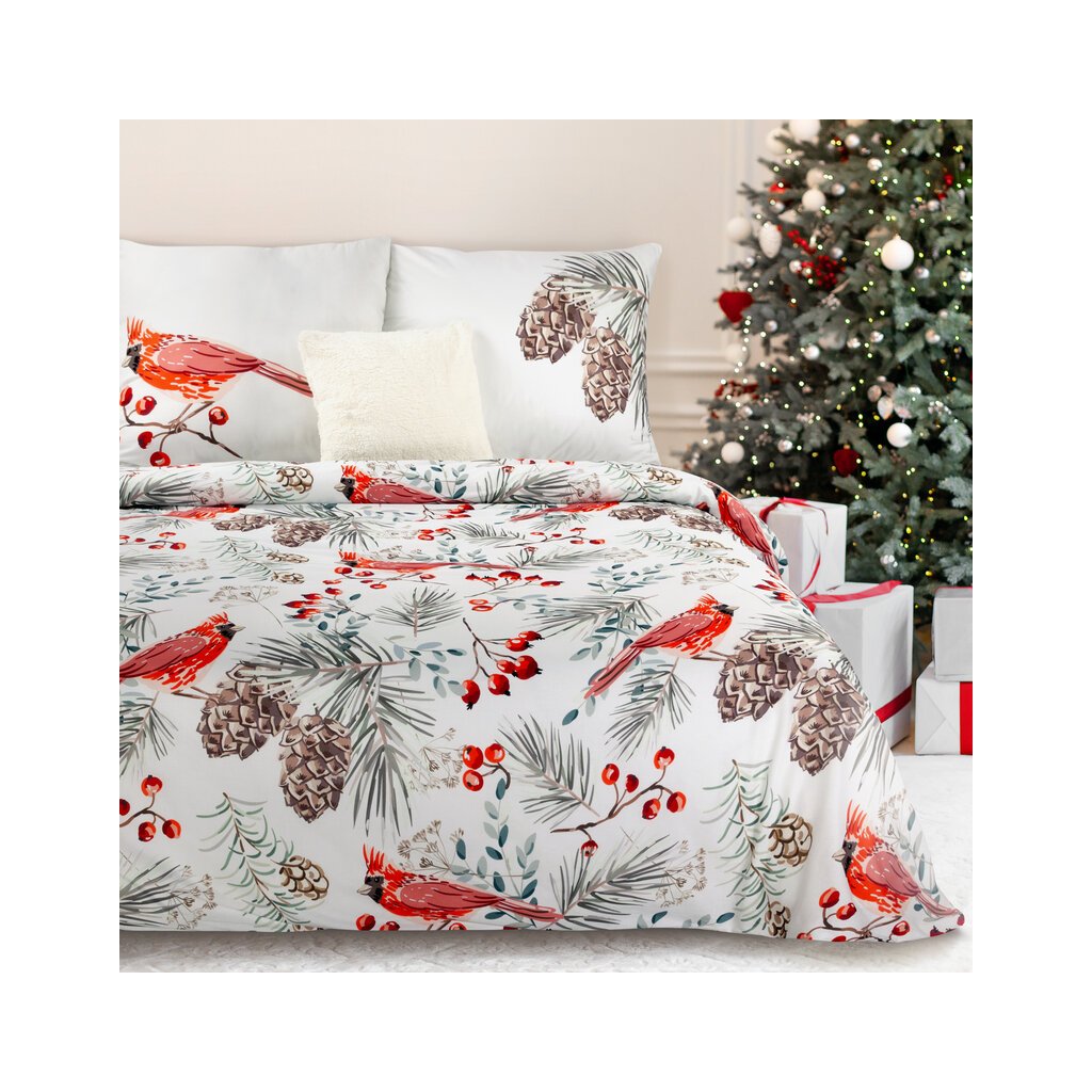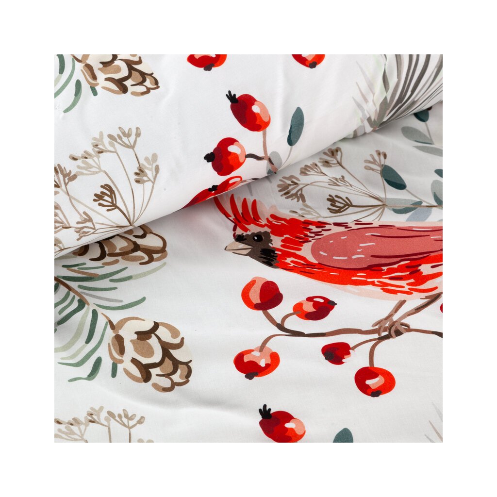 Vianočné obliečky na jednolôžko WILLOW | biela/červená 140 x 200 cm