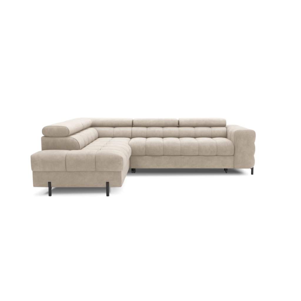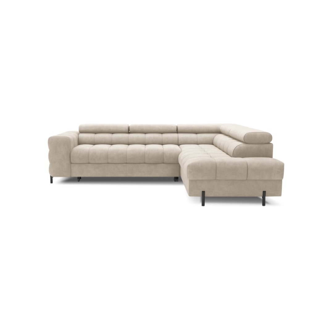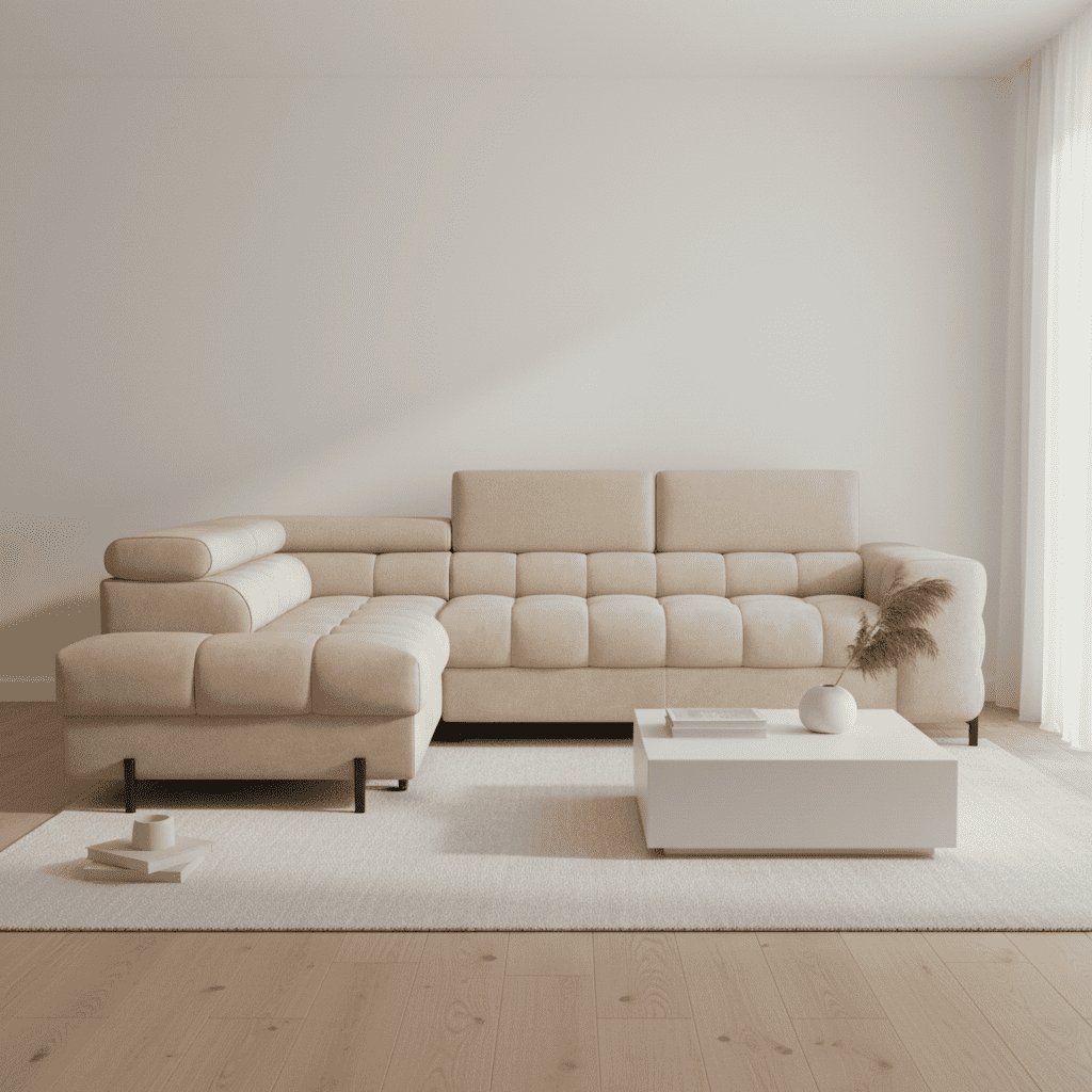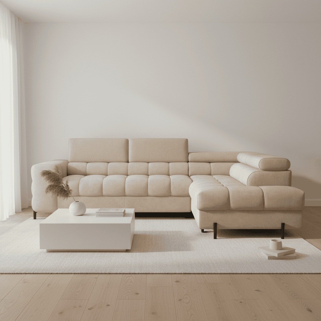Vychutnajte si dokonalé pohodlie s modernou rohovou sedačkou FERUCCEA, ktorá sa stane dominantou vašej obývačky. Táto elegantná sedačka v neutrálnom odtieni béžovej farby je ideálnym riešením pre moderné interiéry, ktoré kladú dôraz na minimalizmus, komfort a funkčnosť. Sedačka je vyrobená z kvalitného, mäkkého poťahového materiálu príjemného na dotyk a doplnená o ergonomické operadlá s nastaviteľnými opierkami hlavy, ktoré zabezpečia maximálny relax. Vďaka priestrannému sedaciemu priestoru je ideálna pre rodiny aj návštevy – každý si nájde svoje miesto na oddych.