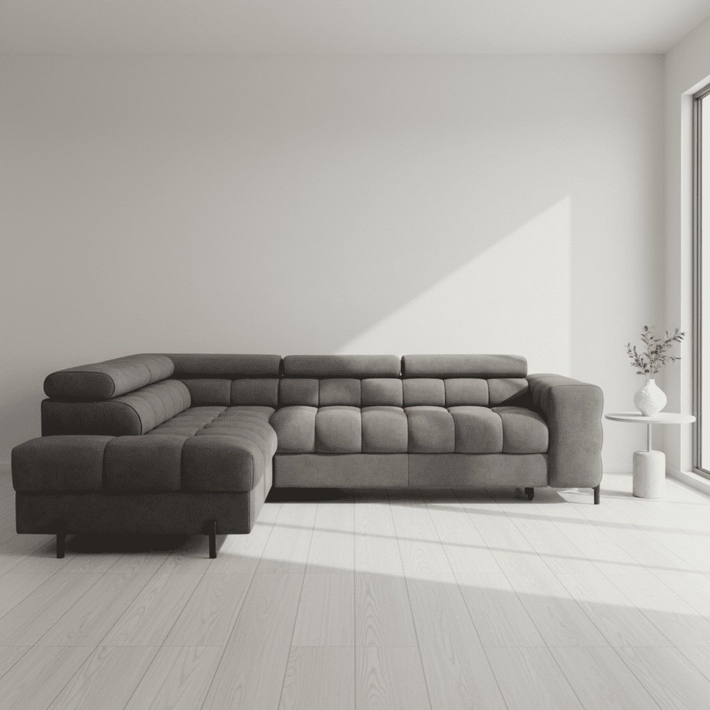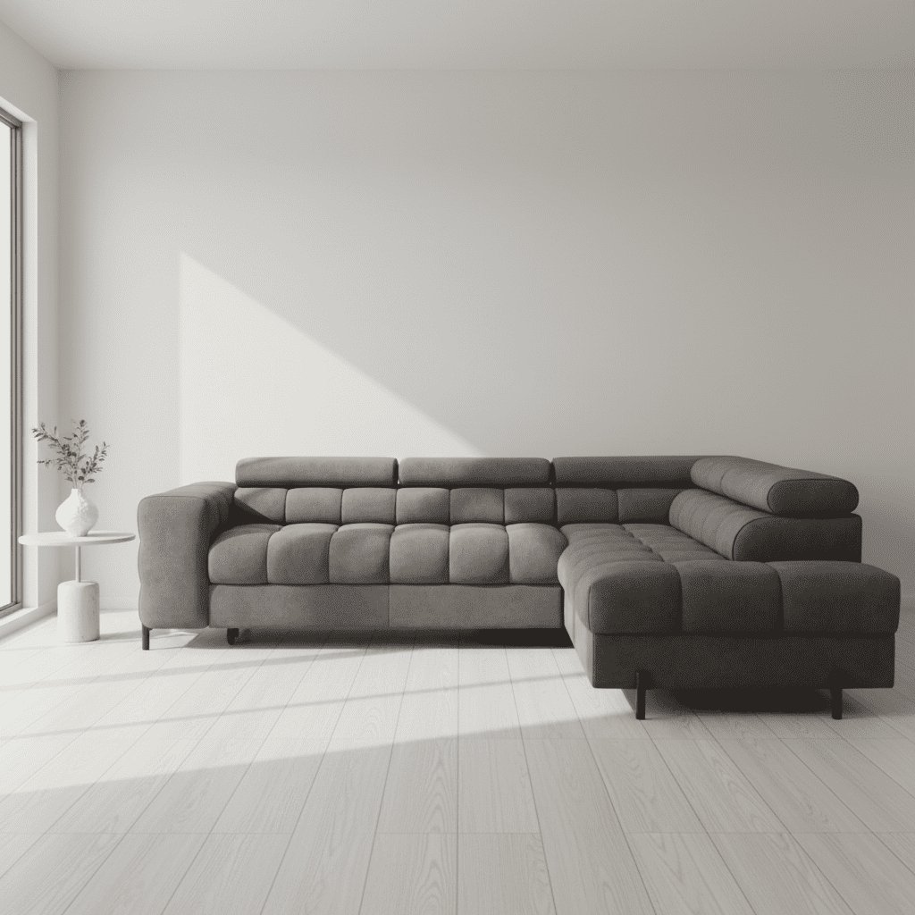 Vychutnajte si dokonalé pohodlie s modernou rohovou sedačkou FERUCCEA, ktorá sa stane dominantou vašej obývačky. Táto elegantná sedačka v neutrálnom odtieni sivej farby je ideálnym riešením pre moderné interiéry, ktoré kladú dôraz na minimalizmus, komfort a funkčnosť. Sedačka je vyrobená z kvalitného, mäkkého poťahového materiálu príjemného na dotyk a doplnená o ergonomické operadlá s nastaviteľnými opierkami hlavy, ktoré zabezpečia maximálny relax. Vďaka priestrannému sedaciemu priestoru je ideálna pre rodiny aj návštevy – každý si nájde svoje miesto na oddych.