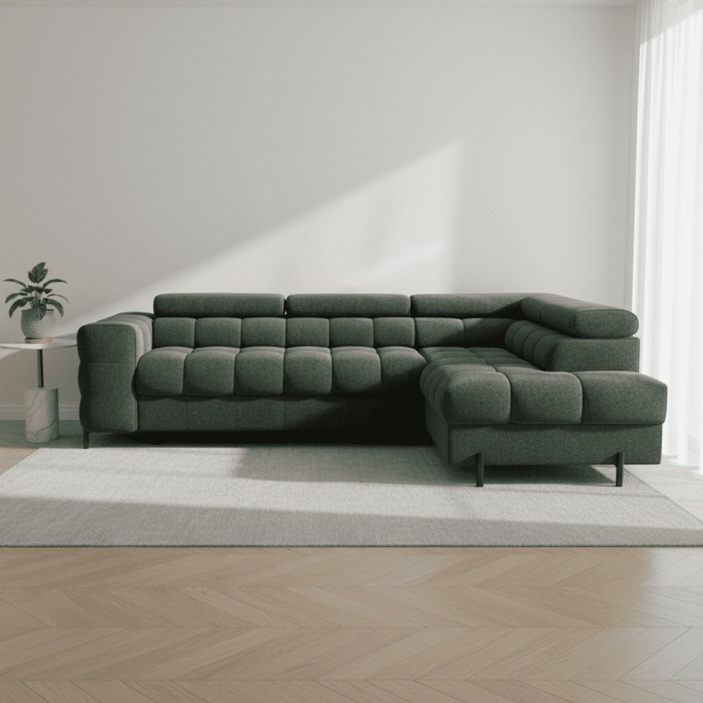 Vychutnajte si dokonalé pohodlie s modernou rohovou sedačkou FERUCCEA, ktorá sa stane dominantou vašej obývačky. Táto elegantná sedačka v neutrálnom odtieni sivej farby je ideálnym riešením pre moderné interiéry, ktoré kladú dôraz na minimalizmus, komfort a funkčnosť. Sedačka je vyrobená z kvalitného, mäkkého poťahového materiálu príjemného na dotyk a doplnená o ergonomické operadlá s nastaviteľnými opierkami hlavy, ktoré zabezpečia maximálny relax. Vďaka priestrannému sedaciemu priestoru je ideálna pre rodiny aj návštevy – každý si nájde svoje miesto na oddych.