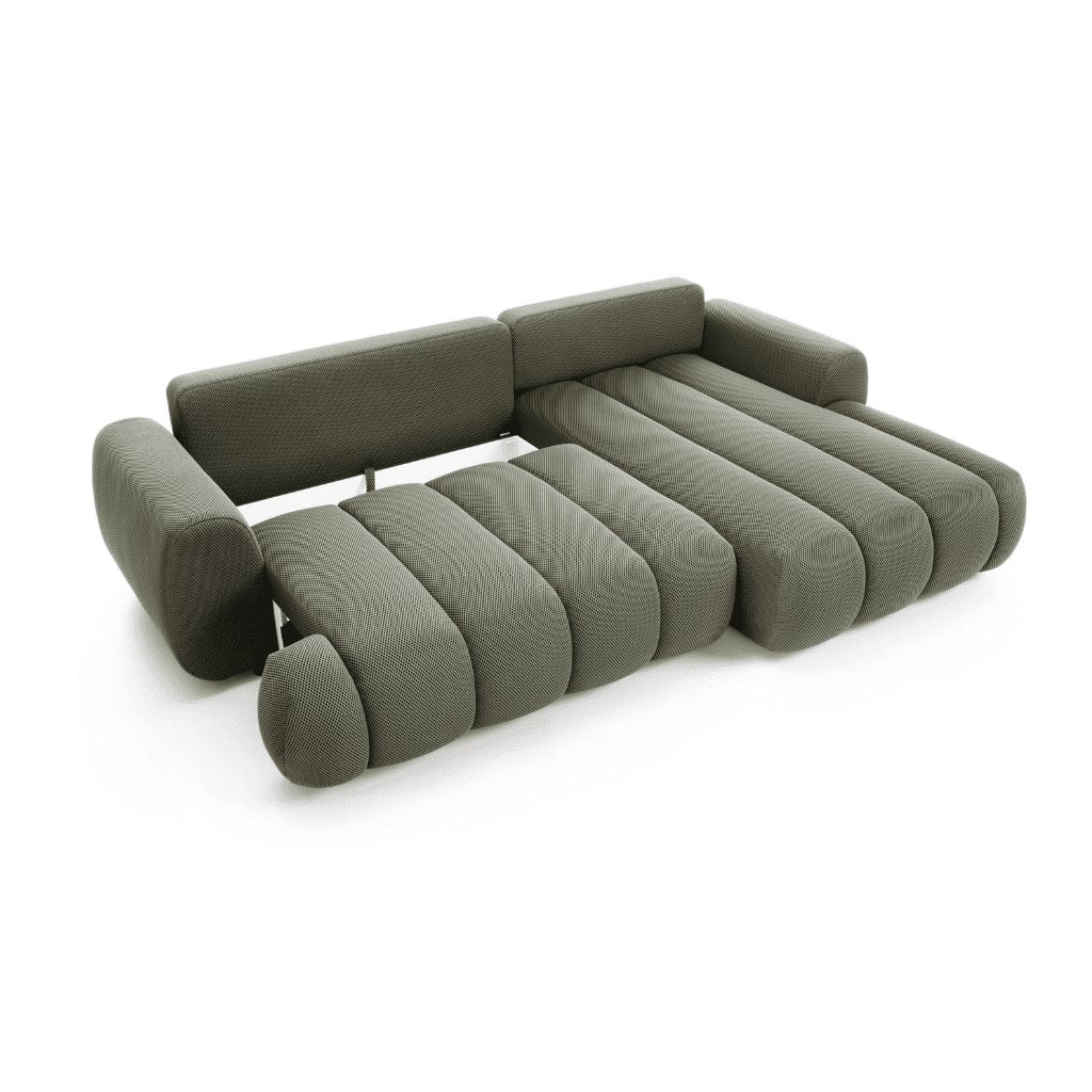 Jedným jednoduchým pohybom sedačku rozložíte na komfortné lôžko. To oceníte najmä vtedy, keď u vás prespávajú priatelia alebo rodina. Váš domov tak získa nielen krásny, ale aj praktický prvok. Sedačka je vybavená veľkorysým úložným priestorom, do ktorého jednoducho schováte prikrývky, posteľnú bielizeň alebo sezónne doplnky. Vďaka tomu máte vždy všetko po ruke a zároveň udržíte obývačku upratanú.