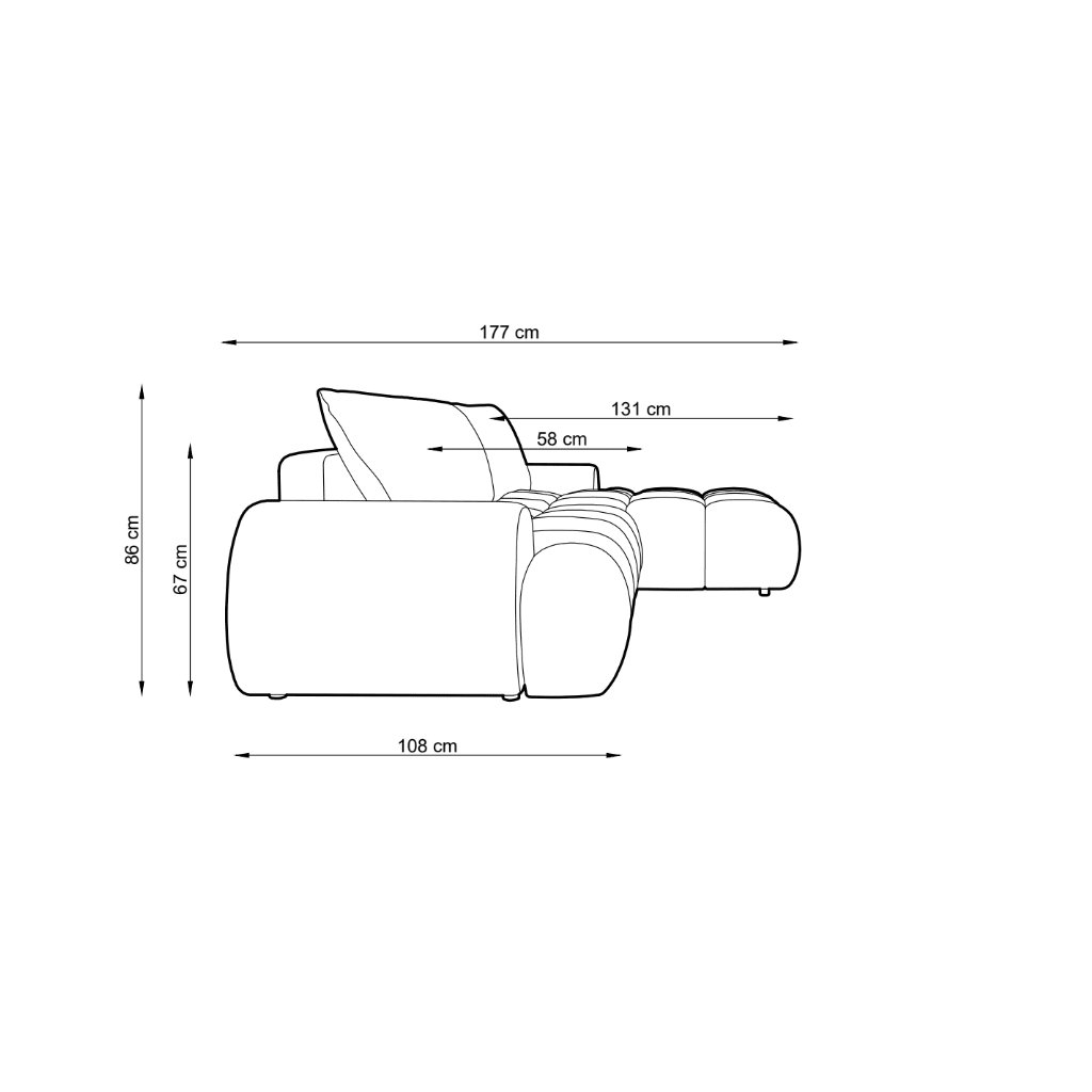 - výška bez vankúšov: 67 cm