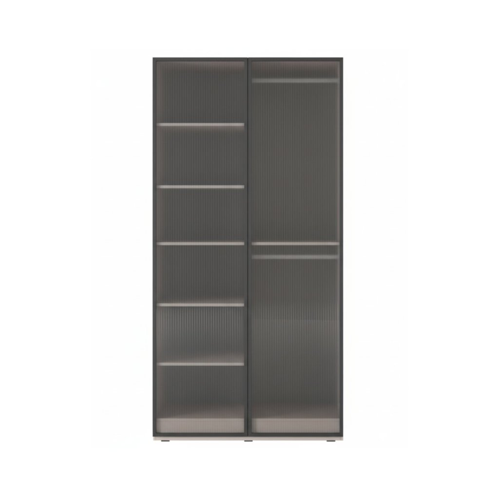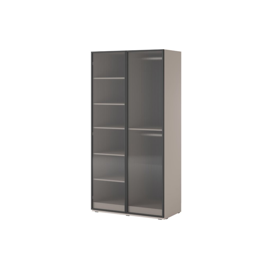 Moderná šatníková skriňa FLEXON s modulárnym dizajnom vám umožní prispôsobiť si úložný priestor podľa vašich potrieb aj rozmerov miestnosti. Elegantné farebné prevedenie cashmere v kombinácii s dverami FLUTES vytvára sofistikovaný a štýlový vzhľad, ktorý sa dokonale hodí do každého moderného interiéru. Dvere z priehľadného vrúbkovaného skla, osadené v pevných hliníkových rámoch, pôsobia ľahko, elegantne a nadčasovo, pričom do priestoru vnášajú jemnú textúru a vizuálnu hĺbku. Vnútorné usporiadanie skrine ponúka praktické police a závesné tyče, ktoré poskytujú dostatok miesta na uloženie aj zavesenie odevov. Skriňa tak ponúka maximálnu prehľadnosť, funkčnosť a komfort pri každodennom používaní.