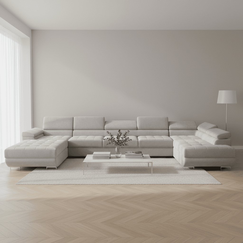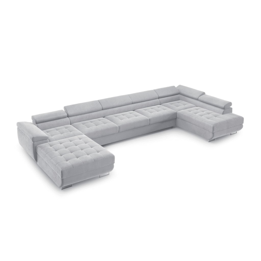 Zažite spojenie výnimočného komfortu a elegantného dizajnu s luxusnou rohovou sedačkou v tvare U BENJAMIN XL. Tento moderný model ponúka veľkorysý priestor na sedenie, ideálny pre rodinné posedenia, relax po náročnom dni aj spoločné filmové večery. Vďaka čistým líniám a nadčasovému vzhľadu dokonale zapadne do každého interiéru – od minimalisticky zariadených priestorov až po luxusné obývačky. Sedačka je čalúnená kvalitnou látkou, ktoré sa ľahko udržiavajú a dlhodobo si zachovávajú svoj pôvodný vzhľad. Mäkké sedáky s jemným prešívaním poskytujú maximálne pohodlie aj pri dlhšom sedení, zatiaľ čo nastaviteľné opierky hlavy a podrúčky umožňujú individuálne nastavenie pre váš optimálny komfort. Oceníte aj praktickú stránku sedačky – ponúka dva priestranné úložné priestory a funkciu rozkladu, ktorá vytvorí pohodlné miesto na spanie. Rohová sedačka BENJAMIN XL U sa stane výrazným prvkom vašej obývačky a obľúbeným miestom, kde budete radi tráviť čas každý jeden deň.