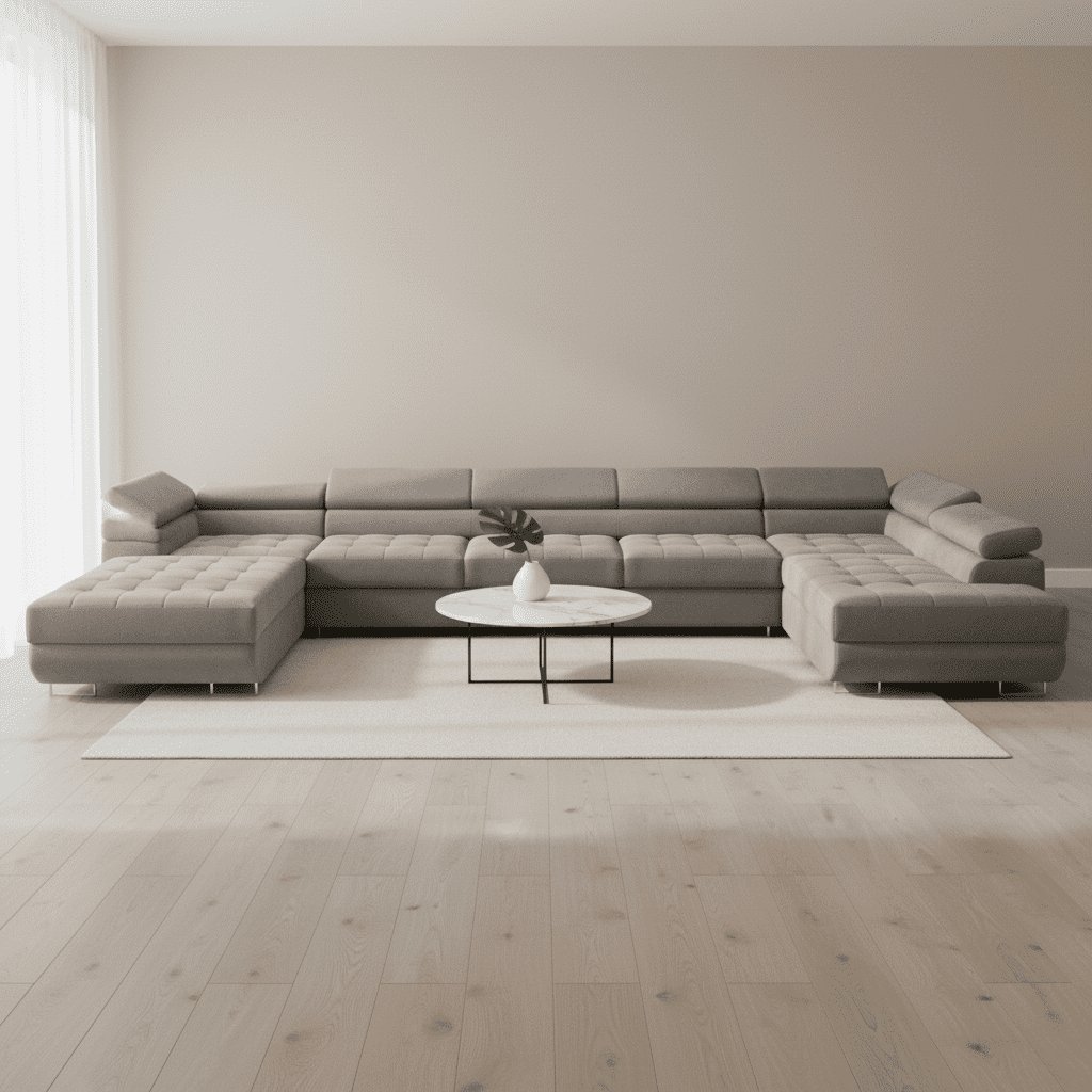 Zažite spojenie maximálneho komfortu a štýlového dizajnu s luxusnou rohovou sedačkou v tvare U BENJAMIN XL v sivej farbe. Tento priestranný model poskytuje veľa miesta na sedenie – ideálny pre celú rodinu, spoločné večery s priateľmi aj chvíle oddychu po náročnom dni. Jej čisté línie a moderný vzhľad zapadnú do každého interiéru, či už preferujete minimalistický alebo elegantný štýl. Sedačka je potiahnutá kvalitnou Monolith, ľahko udržiavateľnou látkou, ktorá si dlho zachováva krásny vzhľad. Mäkké sedáky s dekoratívnym prešívaním poskytujú pohodlie aj pri dlhom sedení a nastaviteľné opierky hlavy a podrúčky umožňujú prispôsobiť si sedačku presne podľa potreby. Praktickosť dopĺňajú dva úložné priestory a funkcia rozkladu, vďaka ktorej získate komfortné miesto na spanie. Sedačka BENJAMIN XL U sa stane výrazným prvkom vašej obývačky aj obľúbeným miestom všetkých členov domácnosti.