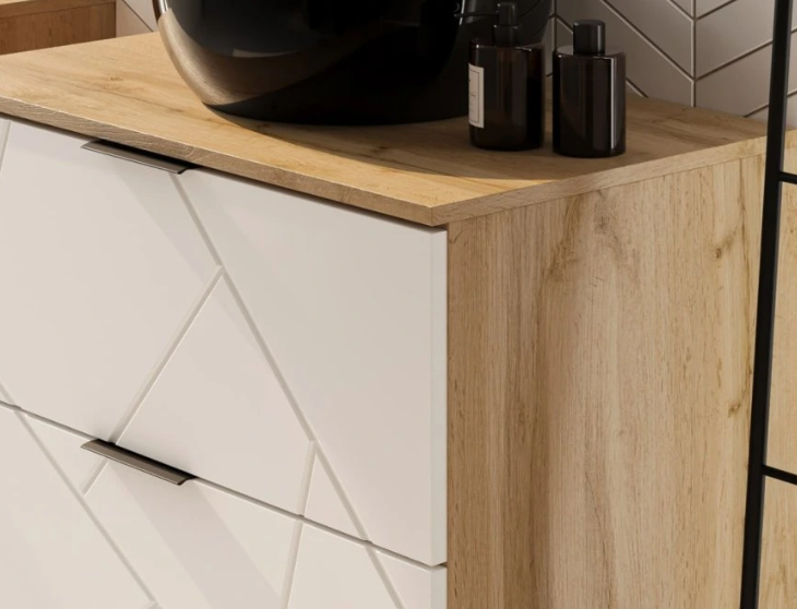 Predstavujeme kúpeľňovú kolekciu MAZI, ktorá upúta pozornosť originálnym farebným prevedením a elegantným dizajnom. Minimalistické línie doplnené o výrazné čelá s jemnou štruktúrou dreva prinášajú do interiéru osobitý štýl a zvýrazňujú jeho moderný charakter. Kolekcia je ideálnym riešením aj pre menšie kúpeľne – spája praktické využitie s estetickou hodnotou a vytvára harmonický priestor, ktorý pôsobí sviežo a nadčasovo.