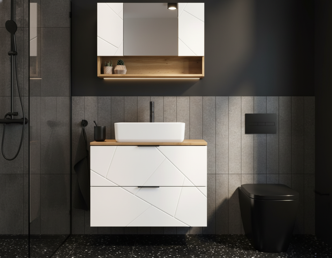 Predstavujeme kúpeľňovú kolekciu MAZI, ktorá upúta pozornosť originálnym farebným prevedením a elegantným dizajnom. Minimalistické línie doplnené o výrazné čelá s jemnou štruktúrou dreva prinášajú do interiéru osobitý štýl a zvýrazňujú jeho moderný charakter. Kolekcia je ideálnym riešením aj pre menšie kúpeľne – spája praktické využitie s estetickou hodnotou a vytvára harmonický priestor, ktorý pôsobí sviežo a nadčasovo.
