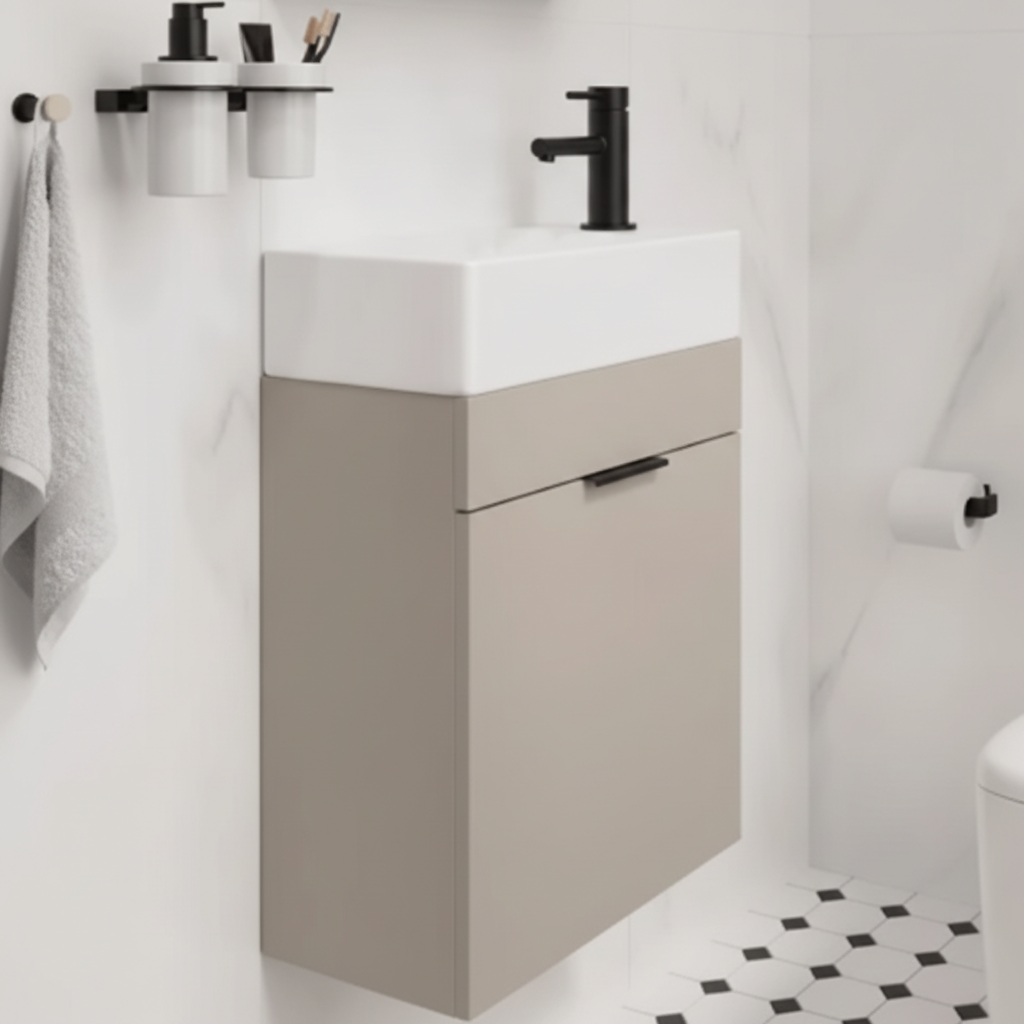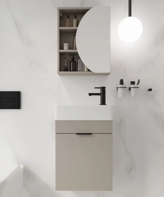 Kúpeľňová zostava nábytku NANCY prináša dokonalé spojenie moderného štýlu a prirodzenej elegancie. Povrchová úprava v odtieni cashmere dodáva interiéru sviežosť, čistotu a ľahkosť. Je ideálnou voľbou pre tých, ktorí hľadajú kúpeľňový nábytok s nadčasovým dizajnom, praktickým využitím a estetickým vzhľadom.