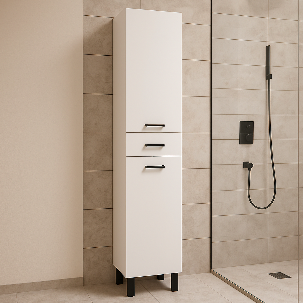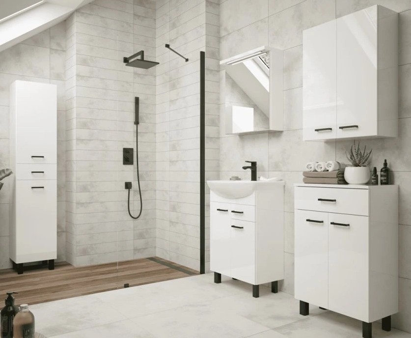Objavte kúpeľňovú kolekciu NOVELTY v elegantnom bielom lesku, ktorá do vášho interiéru prinesie moderný štýl a sviežosť. Skrinky s jemnou lesklou povrchovou úpravou nádherne odrážajú svetlo a opticky zväčšujú priestor. Doprajte svojej kúpeľni nádych luxusu a čistoty, ktorý pôsobí nadčasovo a harmonicky. Zariaďte si kúpeľňu štýlovo s basic kolekciou NOVELTY.
