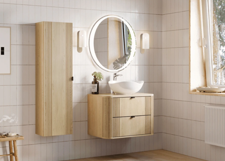 Vneste do svojej kúpeľne nadčasovú eleganciu v modernom prevedení, kde sa prirodzený vzhľad dreva stretáva s čistými líniami a štýlovými detailmi. Svetlý dekor v kombinácii s jemným vertikálnym frézovaním na skrinkách pôsobí vzdušne, harmonicky a zároveň útulne. Kúpeľňa OVALIA Cremona je skvelou voľbou pre tých, ktorí milujú dizajn, no nechcú ustupovať z nárokov na praktickosť. Premyslené riešenie úložného priestoru a kvalitné materiály zabezpečia, že bude nielen krásna na pohľad, ale aj spoľahlivo funkčná každý deň – a to dlhé roky.