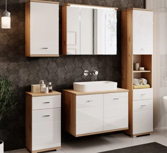 Kúpeľňová kolekcia STING prináša modernú eleganciu v spojení s prirodzeným šarmom. Spojenie bieleho vysokého lesku a dekoru dub artisan pôsobí sviežo, vzdušne a čisto, čím dodáva interiéru ľahkosť a harmóniu. Sting je ideálnou voľbou pre tých, ktorí hľadajú kúpeľňový nábytok spájajúci estetiku, praktickosť a nadčasový dizajn – riešenie, ktoré premení každodennú rutinu na príjemný zážitok.