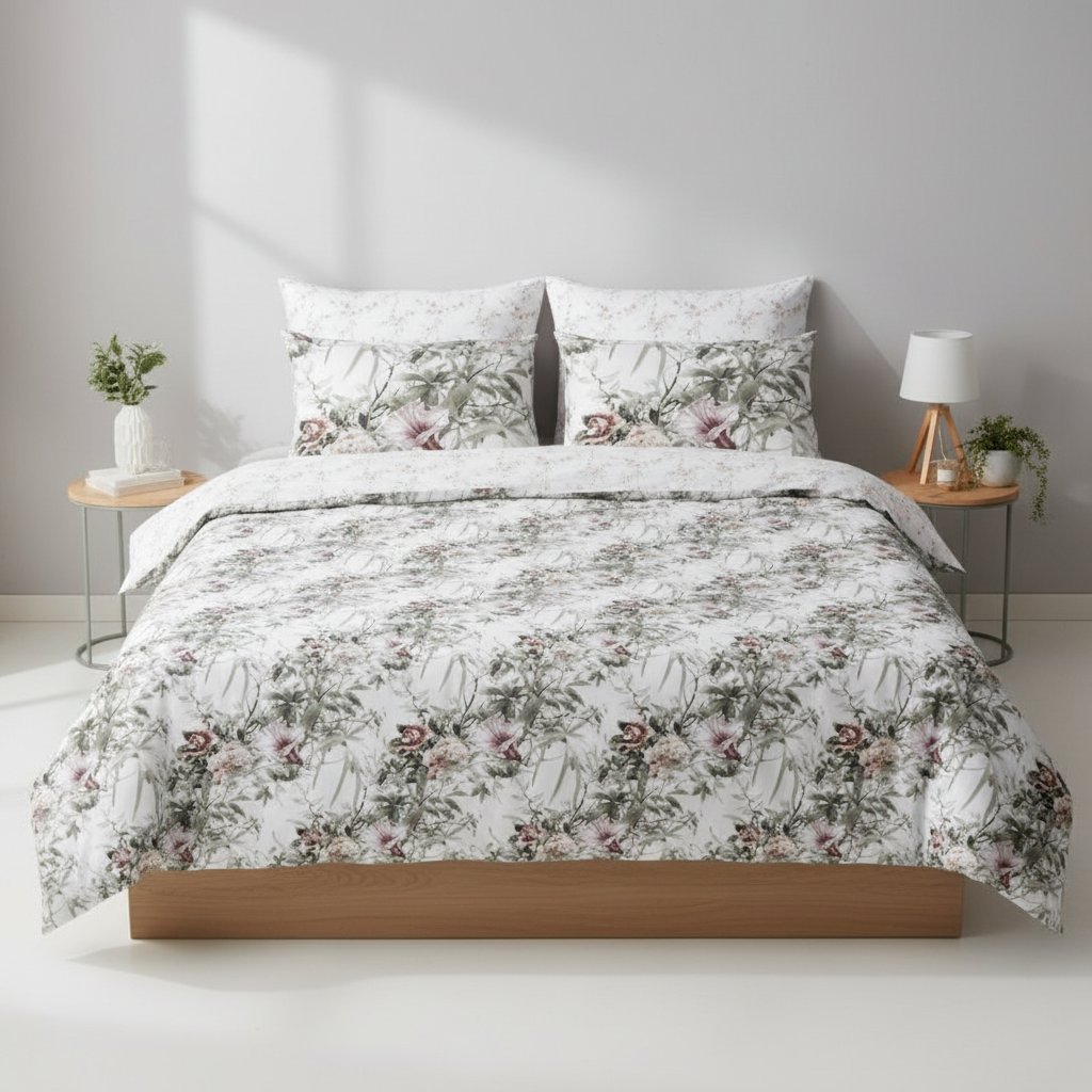 Doprajte si luxusný spánok s elegantnou posteľnou súpravou z bavlneného saténu NIKA 53 s jemnou potlačou. Vďaka kombinácii prírodného bavlneného vlákna a saténovej väzby pôsobí bielizeň hladko, jemne a dodáva spálni nádych luxusu a sviežosti. Táto bavlnená saténová posteľná súprava s potlačou prináša komfort, eleganciu a kvalitu v jednom. Je perfektnou voľbou pre tých, ktorí hľadajú jemnosť prírodného materiálu a štýlový vzhľad spálne.