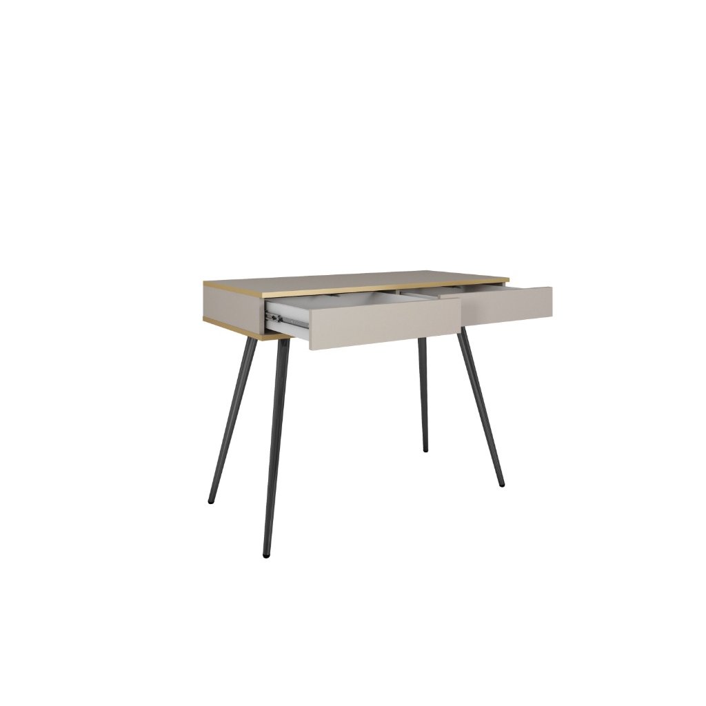 Štýlový toaletný stolík BIJOU T-102 v čiernom prevedení so zlatými detailmi pôsobí elegantne, moderne a dodáva interiéru nádych luxusu. Táto nadčasová farebná kombinácia sa výborne hodí k rôznym štýlom aj farebným odtieňom zariadenia. Stolík disponuje dvomi priestrannými zásuvkami s plným výsuvom, ktoré ponúkajú praktický úložný priestor na kozmetiku či doplnky. Doplňte svoju spálňu alebo študentskú dievčenskú izbu o vkusný a elegantný kúsok, ktorý skrášli každý interiér.