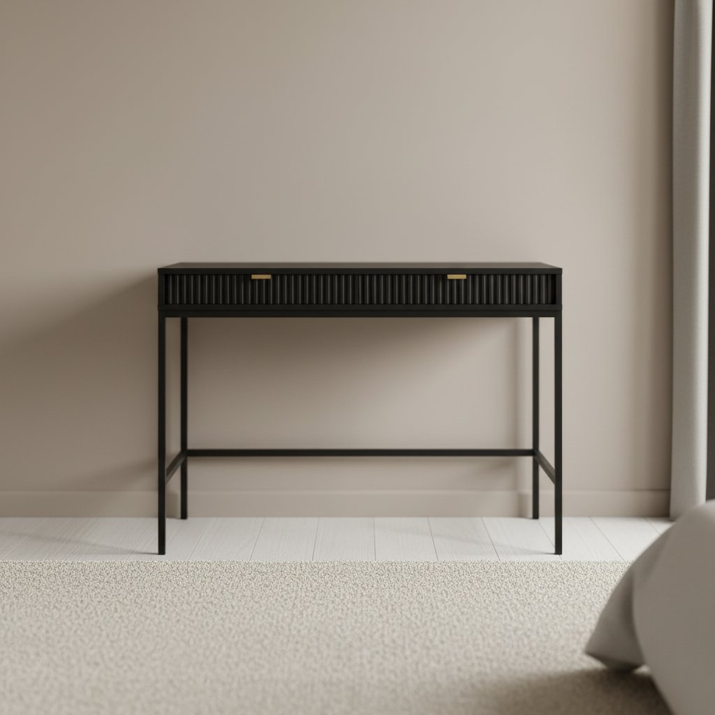 Aj klasický štýl interiéru si dnes vyžaduje nový, moderný prístup pri výbere nábytku. Kolekcia MONA spája tradičný dizajn s modernými prvkami, vďaka čomu prináša elegantný vzhľad, originálny charakter a praktickosť v jednom. Toaletný stolík MONA T-104 v elegantnej čiernej farbe pôsobí útulne, decentne a nadčasovo. Je vybavený dvomi priestrannými zásuvkami, ktoré ponúkajú praktický úložný priestor pre všetky drobnosti každodenného používania. Pri každodennom kontakte oceníte odolné ABS hrany, ktoré chránia nábytok pred poškodením a predlžujú jeho životnosť. Tento stolík je ideálnym spojením estetiky a funkčnosti, vďaka čomu dokonale zapadne do moderných aj klasických interiérov.