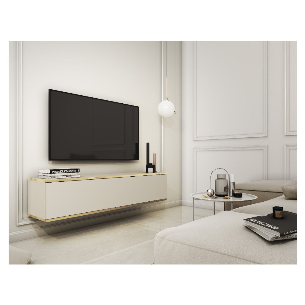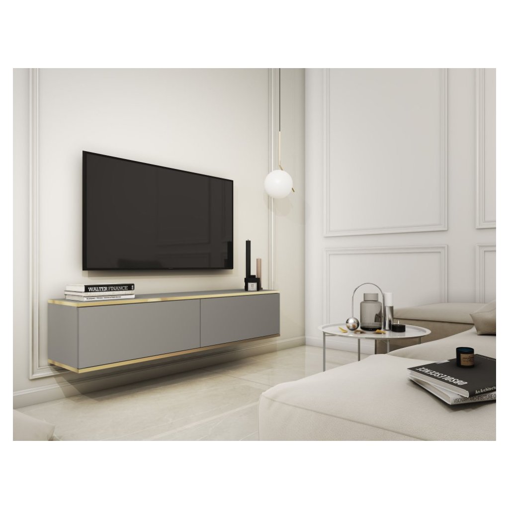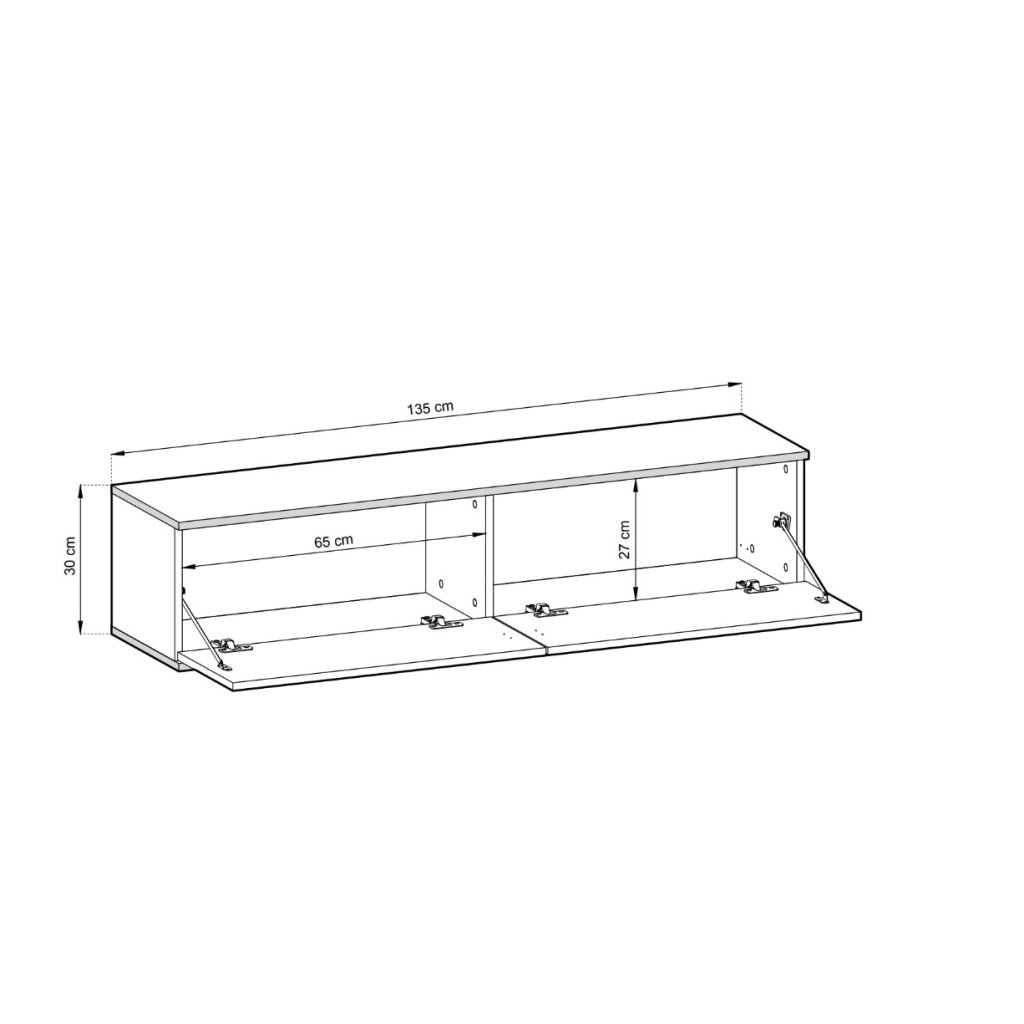 Hľadáte závesný TV stolík so štýlovým dizajnom a úložným priestorom? Model BIJOU 135 je ideálnou voľbou pre moderné interiéry. Vybrať si môžete z elegantných farebných variantov doplnených zlatou lištou, ktoré pôsobia nadčasovo a vkusne. Stolík je vyrobený z kvalitných materiálov, má ABS hrany a otváranie PUSH TO OPEN pre jednoduché a pohodlné používanie.