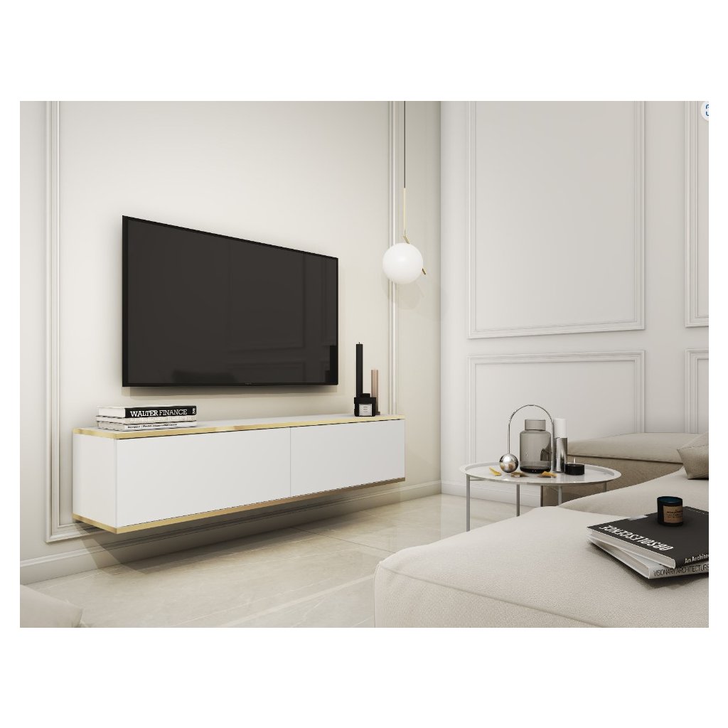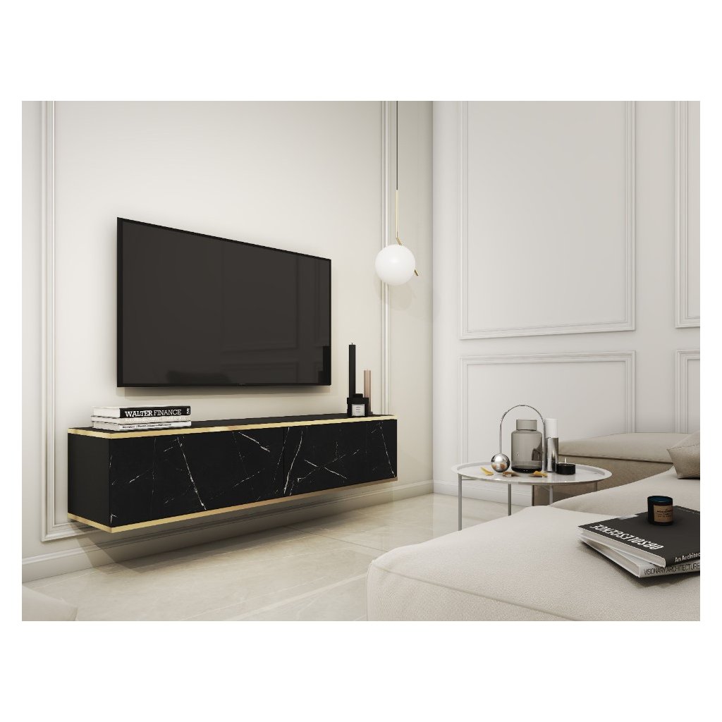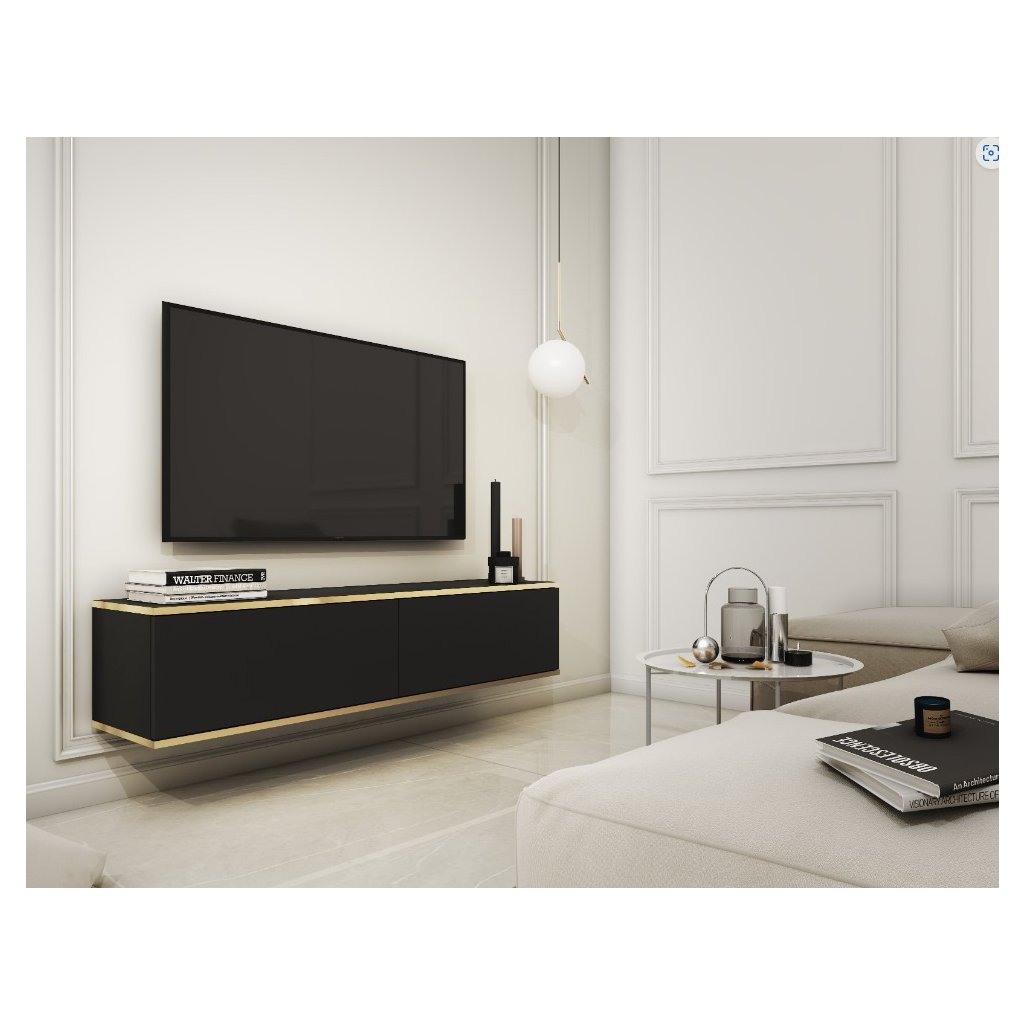 Hľadáte závesný TV stolík so štýlovým dizajnom a úložným priestorom? Model BIJOU 135 je ideálnou voľbou pre moderné interiéry. Vybrať si môžete z elegantných farebných variantov doplnených zlatou lištou, ktoré pôsobia nadčasovo a vkusne. Stolík je vyrobený z kvalitných materiálov, má ABS hrany a otváranie PUSH TO OPEN pre jednoduché a pohodlné používanie.