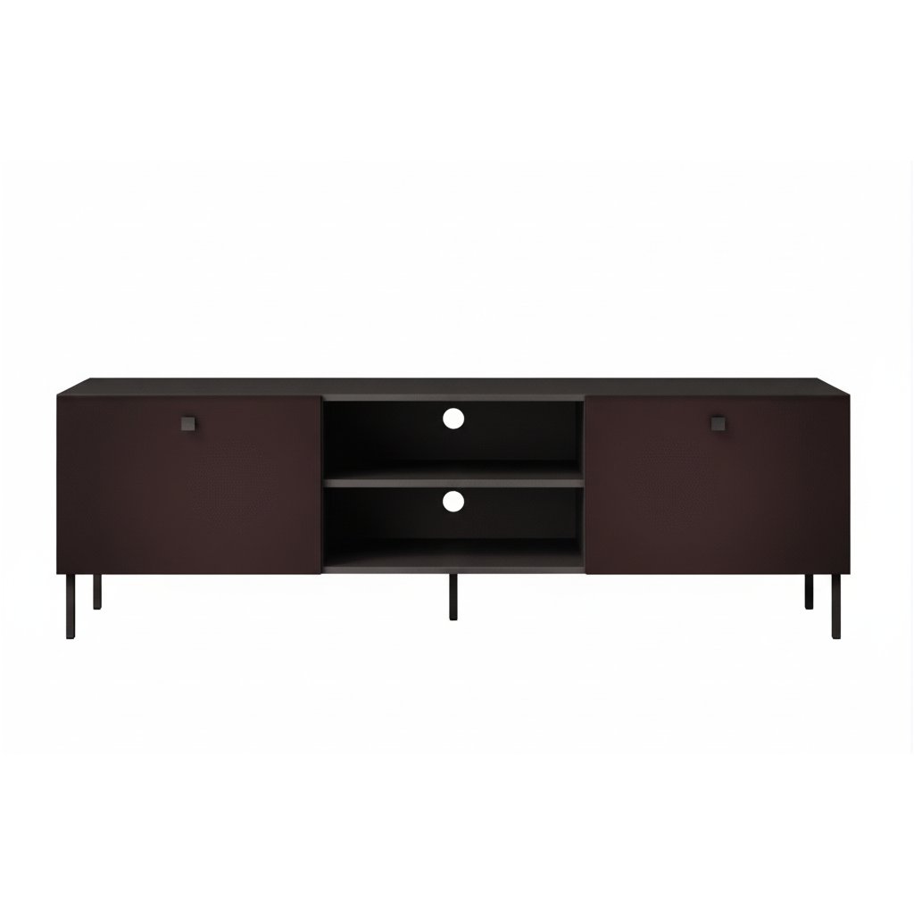 Elegantný TV stolík KISS vo luxusnej farbe burgund predstavuje spojenie moderného minimalizmu a čiernych akcentov, ktoré okamžite povýšia úroveň vášho interiéru. Je navrhnutý pre tých, ktorí chcú svojim priestorom dopriať štýl, čisté línie a maximálnu funkčnosť. Zaujímavá burgund farba v kombinácii s čiernymi nohami a úchytkami vytvára harmonický a nadčasový vzhľad typický pre luxusné interiéry. Vneste do svojho domova harmóniu, estetiku a prémiovú atmosféru, ktorú si zaslúžite.