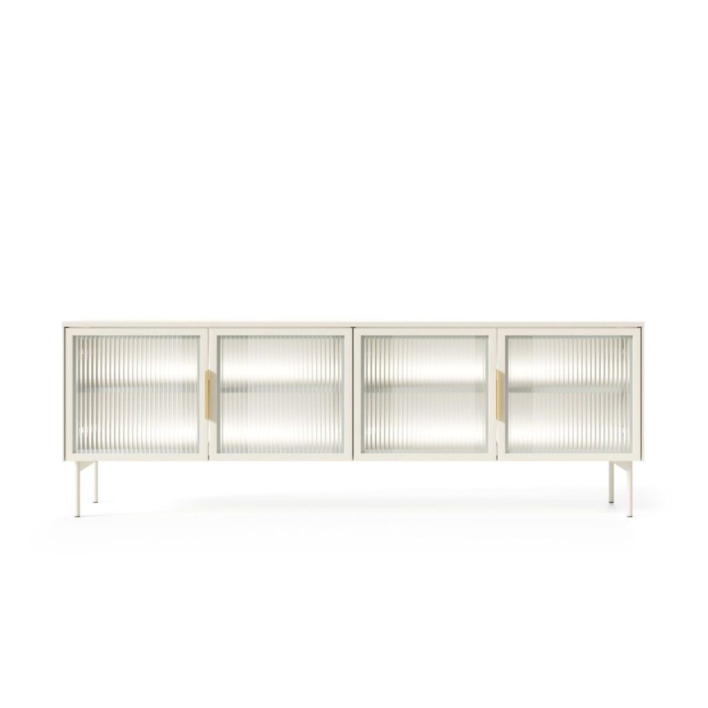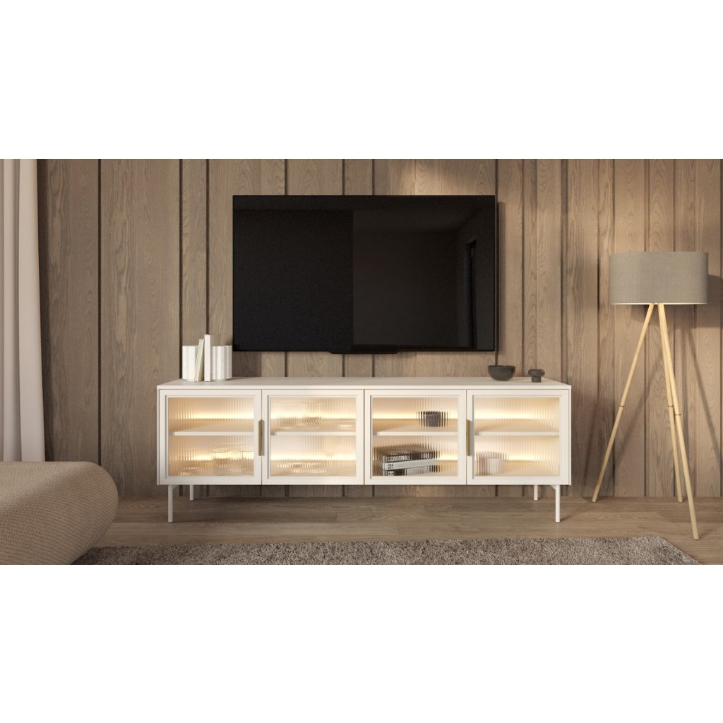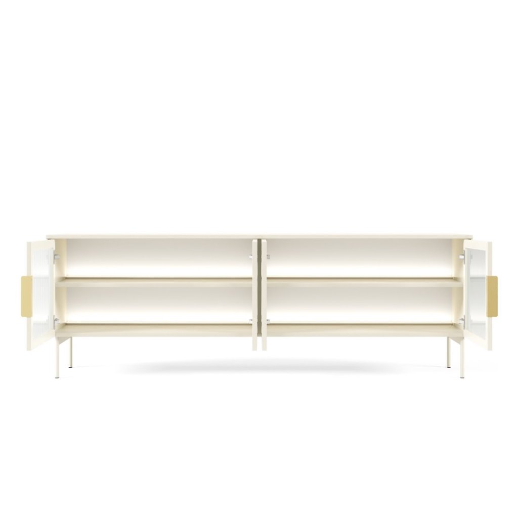 TV stolík NAIRE 4D je elegantným doplnkom moderného interiéru v jemnom a nerušivom odtieni cashmere, doplnený o štýlové zlaté úchytky, ktoré mu dodávajú nádych luxusu. Vysoké nohy vo farbe cashmere dodávajú stolíku ľahkosť a vzdušný vzhľad, vďaka čomu pôsobí harmonicky a vkusne. Súčasťou stolíka je integrované LED osvetlenie v svetlej bielej farbe, ktoré zvýrazňuje jeho moderný dizajn a vytvára príjemnú atmosféru v miestnosti.