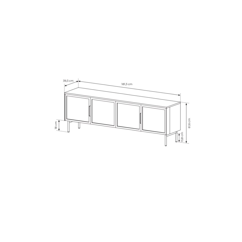 TV stolík NAIRE 4D je vyrobený z odolného 16 mm laminátu s ABS hranami, ktoré poskytujú spoľahlivú ochranu pred poškodením a zaručujú dlhú životnosť nábytku. Pevnú konštrukciu dopĺňajú kovové nohy, ktoré zabezpečujú stabilitu a trvácnosť, pričom zároveň elegantne dopĺňajú jeho moderný dizajn. Údržba je rýchla a jednoduchá – postačí navlhčená handrička alebo jemný čistiaci prostriedok na nábytok, vďaka čomu si stolík zachová svoj bezchybný vzhľad po dlhé roky.