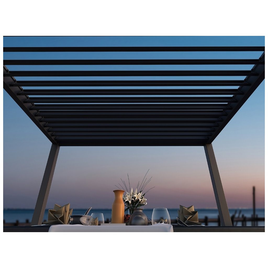 Hliník s práškovou úpravou je vysoko kvalitný aodolný materiál, ktorý sa používa v exteriéri vďaka svojej dlhej životnosti a nenáročnej údržbe. Hliník prirodzene nehrdzavie a v kombinácii s práškovou úpravou je ešte viac chránený pred vlhkosťou a poveternostnými vplyvmi. Stačí ho občas pretrieť vlhkou handričkou bez špeciálnej starostlivosti. Lamely sú vyrobené z nehrdzavejúcej ocele. S bioklimatickou pergolou si môžete naplno vychutnať slnečné lúče alebo sa nimi jednoducho chrániť správnym nastavením lamiel. Pergola zároveň zabezpečuje efektívnu ventiláciu priestoru , čím vytvára príjemnú klímu aj počas horúcich dní. V prípade dažďa poskytne spoľahlivý prístrešok , vďaka čomu budete môcť stráviť posedenie bez ohľadu na počasie.