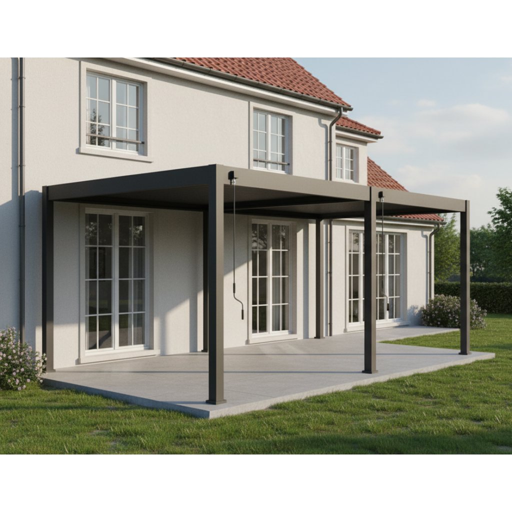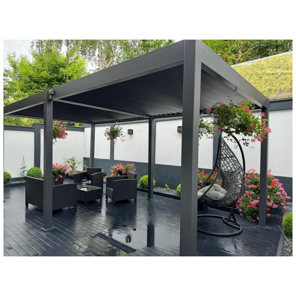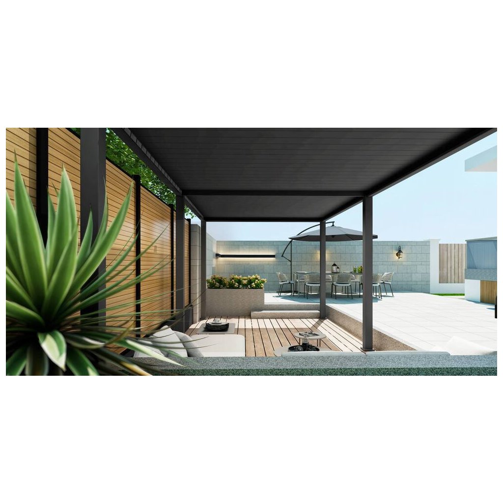 Prémiová voľne stojaca bioklimatická pergola INTRO PLUS v rozmere 6 × 3 m je ideálnym riešením pre moderné vonkajšie posedenie. Poskytuje spoľahlivú ochranu pred slnkom aj dažďom a vďaka sofistikovanému dizajnu dodáva priestoru luxusný a elegantný vzhľad. Pergola je vyrobená z vysokokvalitného hliníka s práškovou povrchovou úpravou, ktorá zaručuje vysokú odolnosť voči poveternostným vplyvom a dlhú životnosť. Pevná a stabilná konštrukcia v antracitovej farbe RAL 7016 s matným povrchom prirodzene zapadne do každého exteriéru. Keďže ide o voľne stojaci model, nie je potrebné vŕtať do stien, čo umožňuje jej flexibilné umiestnenie presne podľa vašich potrieb.