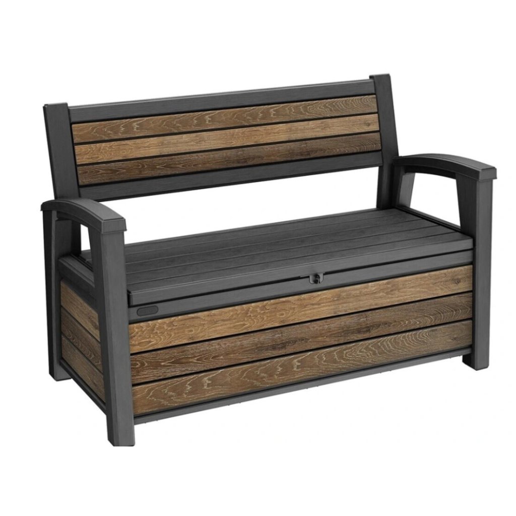Pohodlný oddych vo vašej záhrade si ľahko vytvoríte so štýlovou záhradnou lavicou BENCH. V nadčasovej hnedej farbe pôsobí prirodzene a elegantne, takže sa krásne hodí na terasu, k pergole aj do oddychovej zóny v záhrade. Je to praktický kúsok, ktorý spája dizajn, komfort a funkčnosť v jednom. Lavica BENCH ponúka nielen príjemné miesto na sedenie, ale aj integrovaný odkladací priestor, vďaka ktorému budete mať všetko potrebné vždy poruke – napríklad podsedáky, deky, vankúše, drobné záhradné doplnky či hračky. Exteriér tak bude pôsobiť upravene a vy sa vyhnete zbytočnému neporiadku. Povrchová štruktúra lavice verne imituje prírodné drevo, čo jej dodáva útulný charakter a zvýrazňuje jej šarm. BENCH je ideálnou voľbou pre každého, kto chce do exteriéru priniesť štýlové sedenie s praktickým úložným riešením.