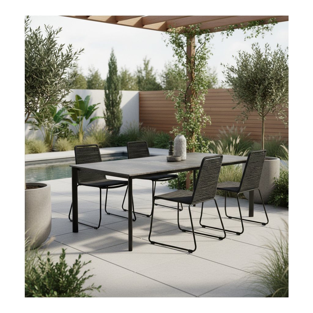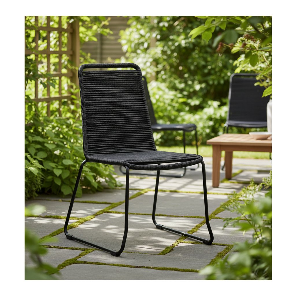 Odolná oceľová konštrukcia v kombinácii s polypropylénovým lanom v antracitovej farbe prináša do vášho záhradného priestoru dotyk moderného luxusu. Stolička je odolná voči poveternostným vplyvom a UV žiareniu. Stoličky majú poddajný sedák a vynikajú dlhou životnosťou. Stoličku je možné naimpregnovať.