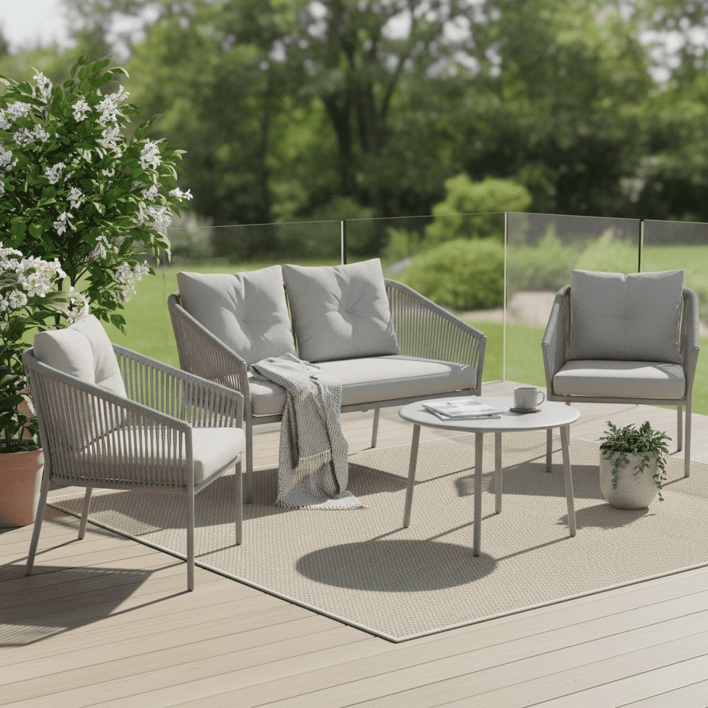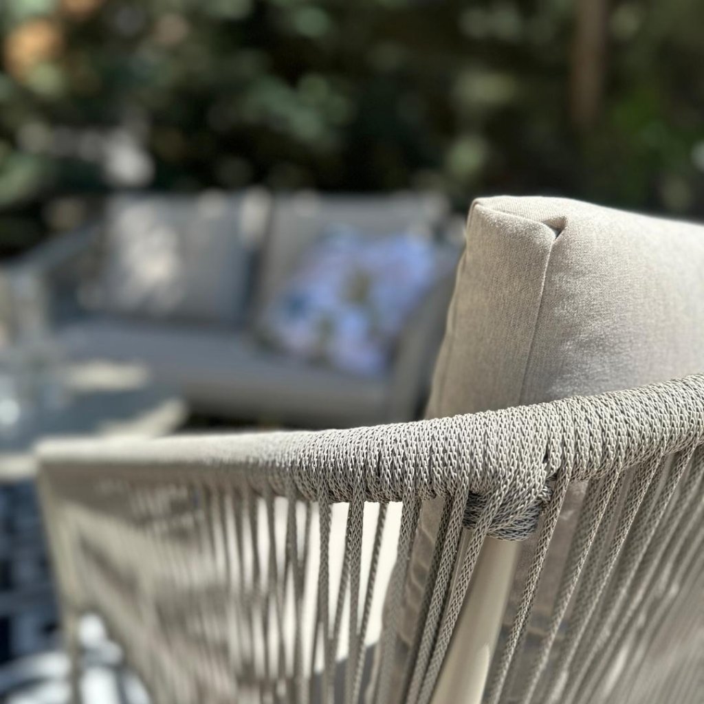 Vysokokvalitná kovová konštrukcia zaručuje dlhú životnosť a vysokú odolnosť voči poveternostným vplyvom. Vďaka kvalitnej povrchovej úprave je nábytok chránený pred koróziou, takže si zachová svoj luxusný vzhľad aj po rokoch používania. Výplet z polypropylénového lana set odľahčuje a pôsobí luxusne. Mäkké a pohodlné podušky zabezpečujú maximálny komfort pri každom posedení, pričom ich elegantný dizajn krásne dopĺňa kovový rám.