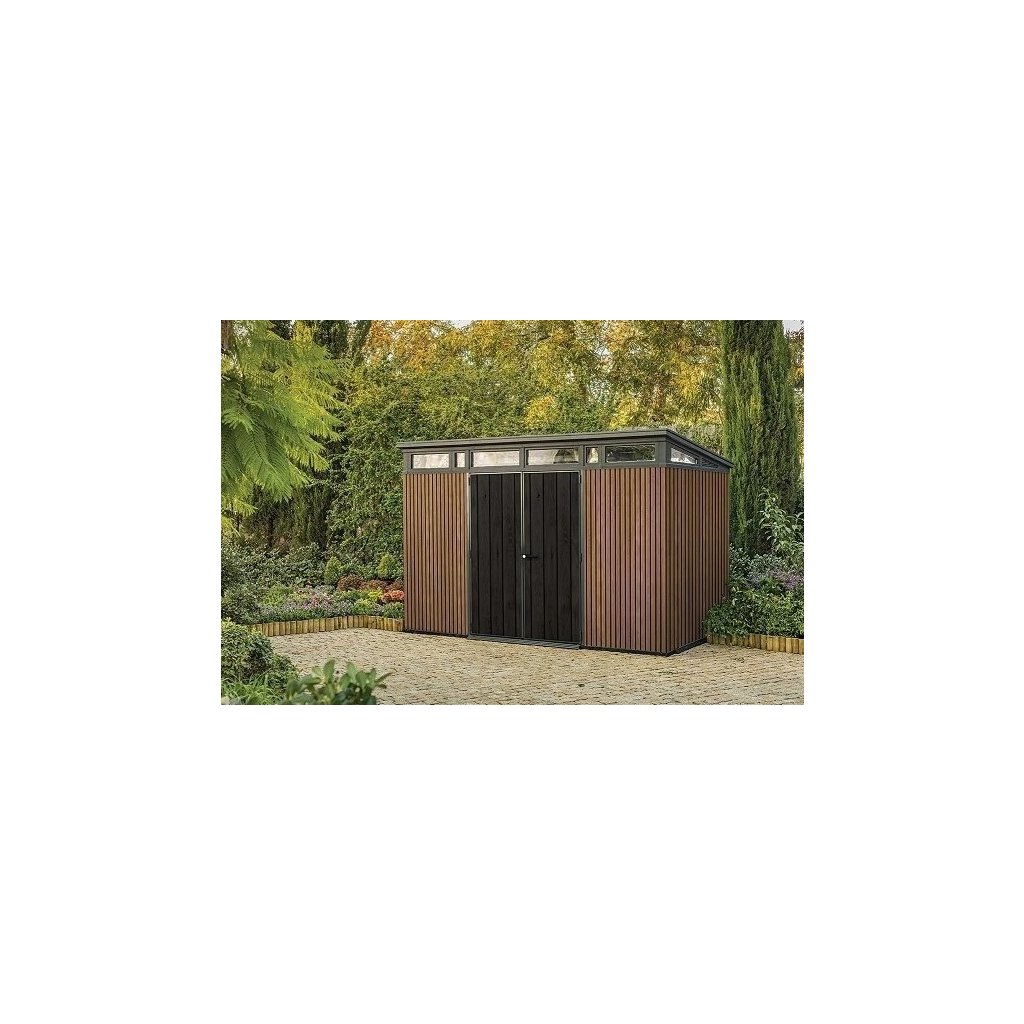 Domček je vyrobený formou jedinečnej technológie DecoCoat™, vďaka čomu je tento inovatívny materiál odolný voči poveternostným vplyvom a nevyžaduje žiadnu údržbu, nehrdzavie ani sa nelúpe. Odolné podlahové panely, kvalitné odvetranie pod strechou a svetlíky pre dostatok prirodzeného svetla podporia perfektný dojem zo záhradného domčeka.