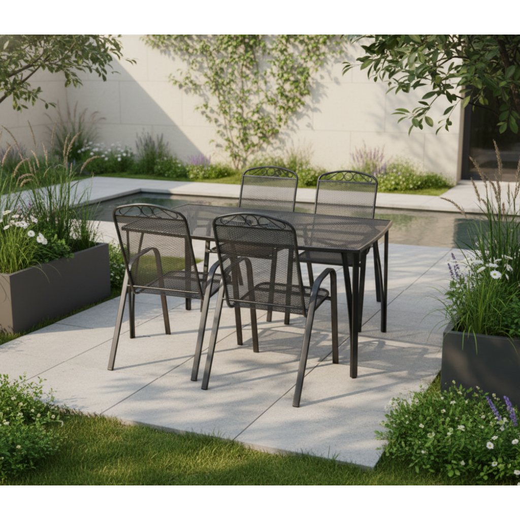 Hľadáte štýlové a zároveň praktické riešenie na letné posedenia na terase či v záhrade? Moderný záhradný set ALMVIK so stolom a štyrmi kovovými stoličkami je skvelou voľbou pre tých, ktorí ocenia kvalitu, komfort a nadčasový vzhľad. Doprajte si príjemné chvíle s rodinou alebo priateľmi vďaka tomuto elegantnému setu, ktorý harmonicky spája funkčnosť s estetikou. Vďaka kompaktným rozmerom sa výborne hodí aj na menšie terasy. Objednajte si ho ešte dnes a premeňte svoj exteriér na pokojné miesto plné pohody.