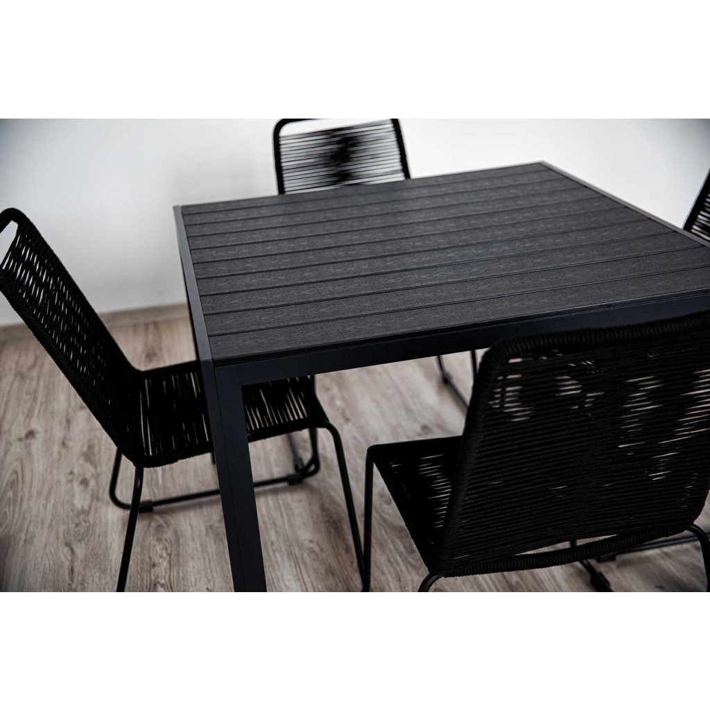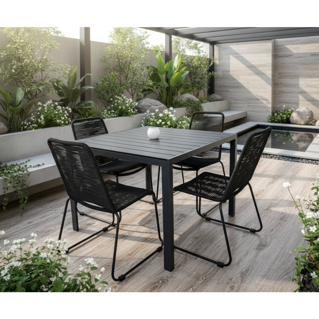 Spojením elegancie, odolnosti a praktického využitia vznikol záhradný set BRIMA, ktorý prinesie do vášho exteriéru štýl aj funkčnosť. Doprajte si moderný a variabilný záhradný nábytok, ktorý v sebe spája nadčasový dizajn a vysokú životnosť. Stôl je dodávaný v demontovanom stave pre jednoduchú manipuláciu a prepravu. Stoličky značky Elvisia zaujmú pevnou oceľovou konštrukciou s práškovou povrchovou úpravou a ručne pleteným lanom v elegantnom antracitovom odtieni, ktoré dodávajú vášmu záhradnému priestoru nádych moderného luxusu. Poduška nie je súčasťou balenia. Nechajte sa inšpirovať touto jedinečnou zostavou a spríjemnite si chvíle na čerstvom vzduchu pohodlným a štýlovým sedením.