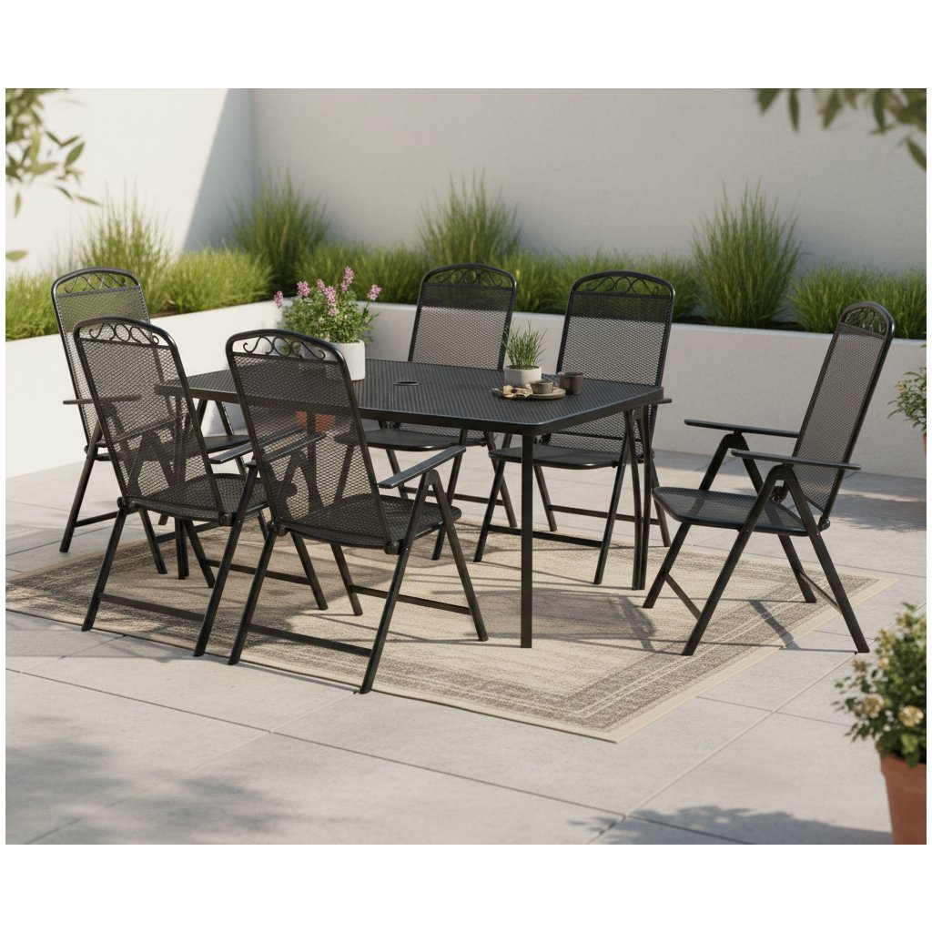 Hľadáte štýlový a zároveň praktický záhradný nábytok na letné posedenia? Moderný záhradný set SIMEN so stolom a šiestimi kovovými polohovateľnými kreslami je ideálnou voľbou pre tých, ktorí kladú dôraz na kvalitu, pohodlie a nadčasový dizajn. Vychutnajte si príjemné letné chvíle s rodinou či priateľmi vďaka tejto elegantnej zostave, ktorá spája funkčnosť s estetikou. Doprajte si komfort na mieru a objednajte si set ešte dnes – vaša terasa sa tak môže premeniť na skutočnú oázu pokoja.