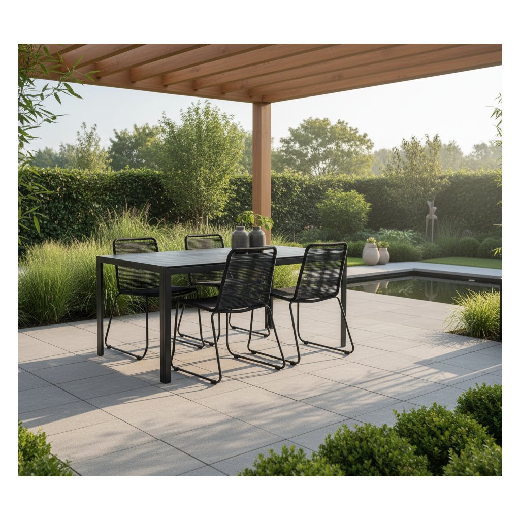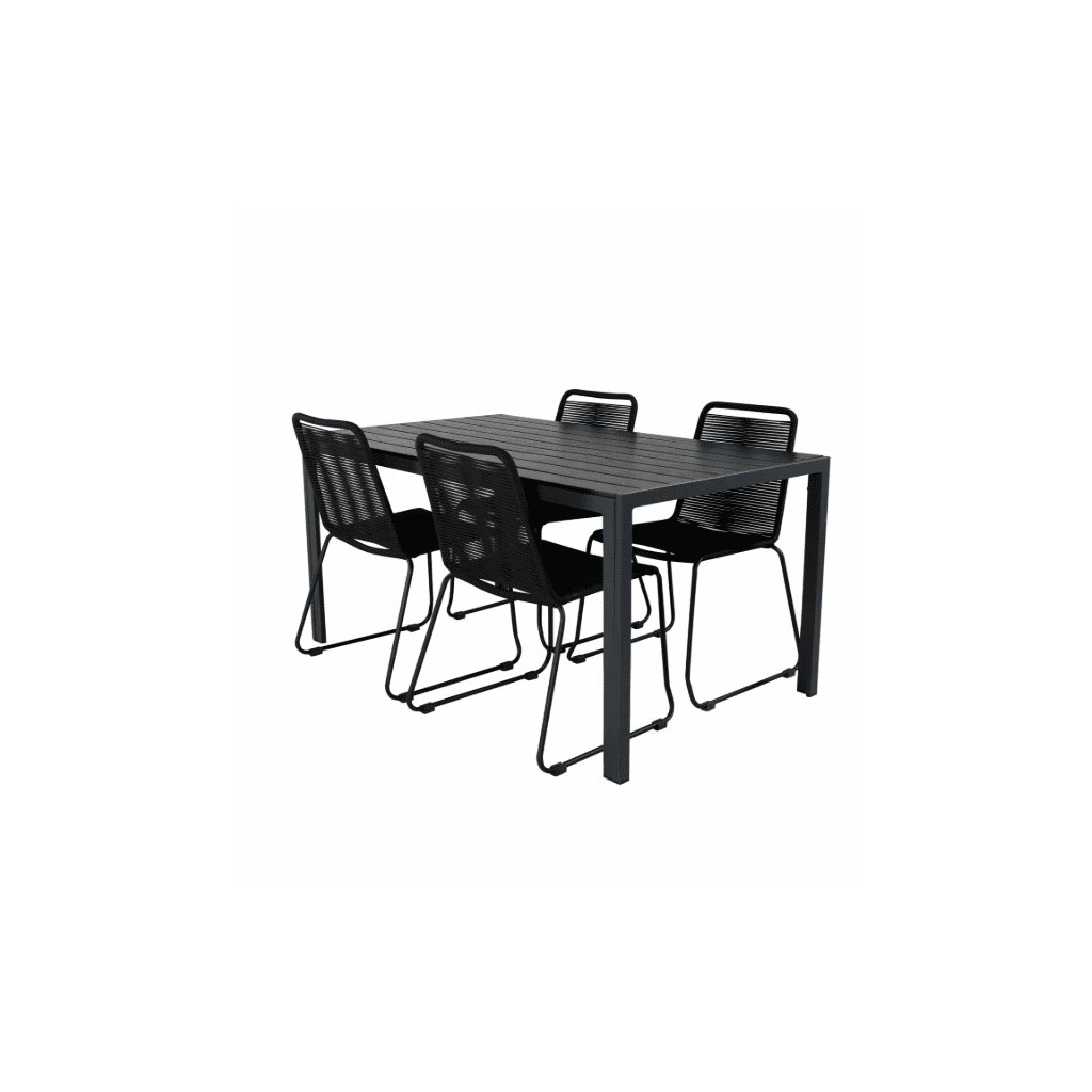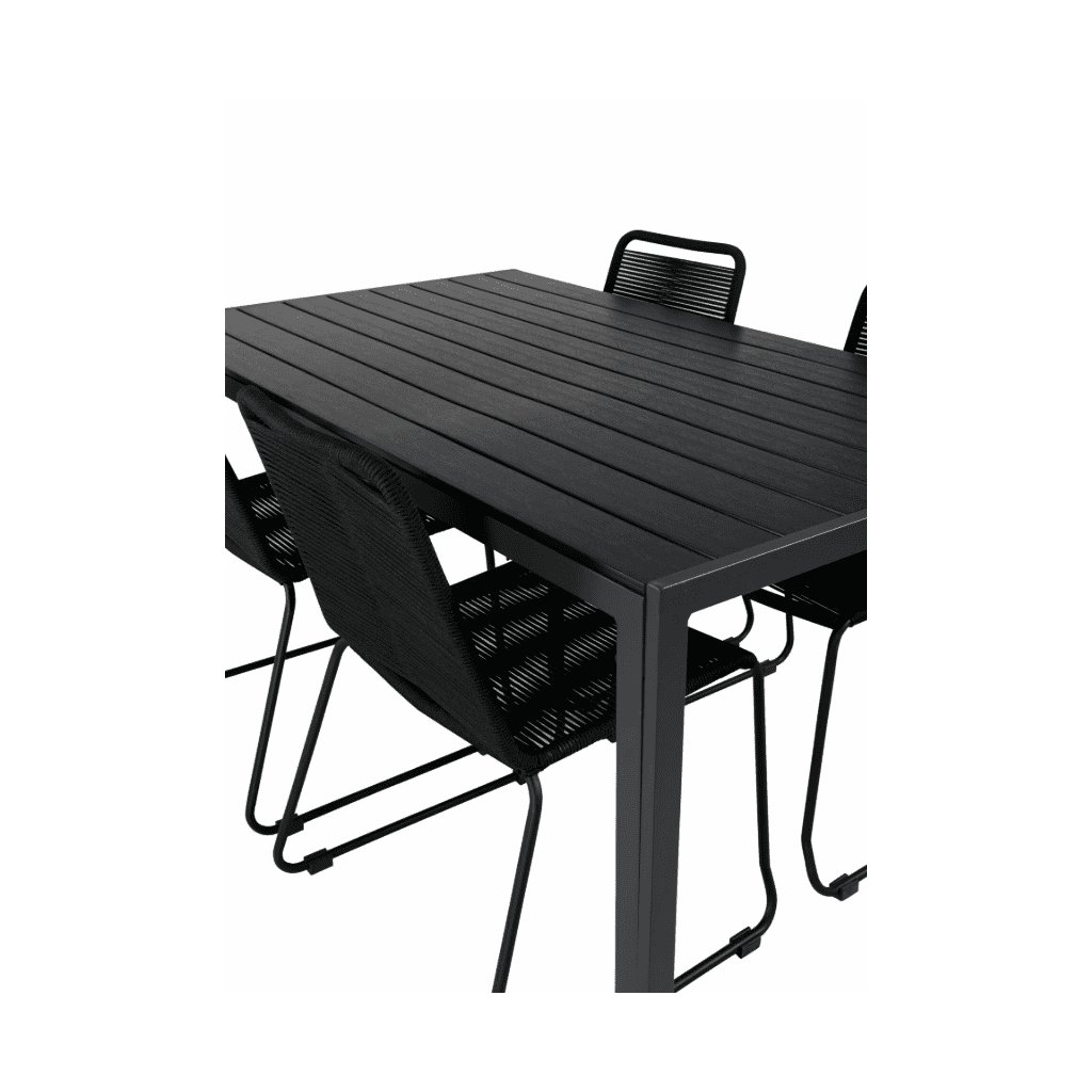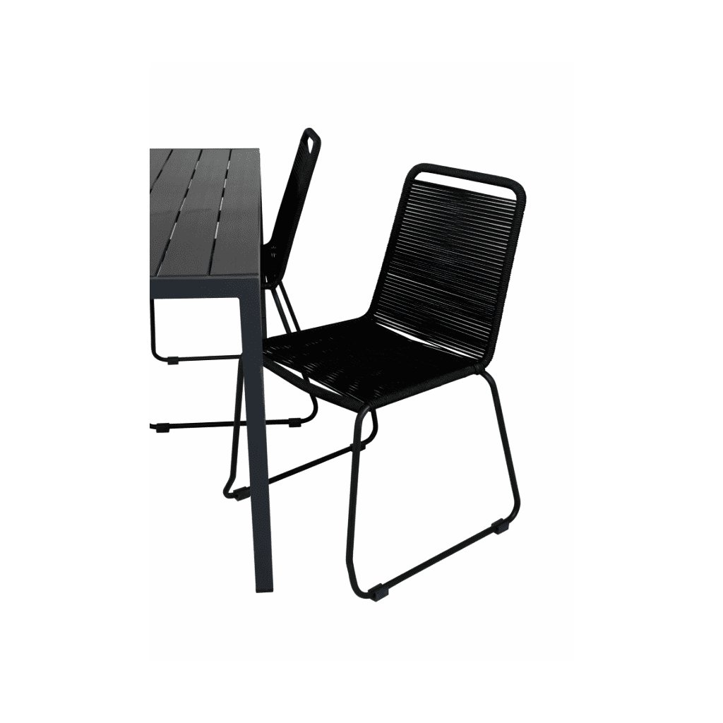 Odolná oceľová konštrukcia v kombinácii s polypropylénovým lanom v antracitovej farbe prináša do vášho záhradného priestoru dotyk moderného luxusu. Stolička je odolná voči poveternostným vplyvom a UV žiareniu. Stoličky majú poddajný sedák a vynikajú dlhou životnosťou. Záhradný stôl s vrchnou doskou z materiálu Artwood pripomínajúci drevo ponúka flexibilitu a pohodlie v každej situácii. Hliníková konštrukcia stola je mimoriadne odolná.