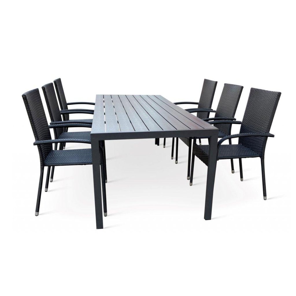 Rozkladací stôl s vrchnou doskou z materiálu Artwood pripomínajúci drevo ponúka flexibilitu a pohodlie v každej situácii. Ratanové materiály sú odolné voči poveternostným podmienkam a zároveň príjemné na dotyk.