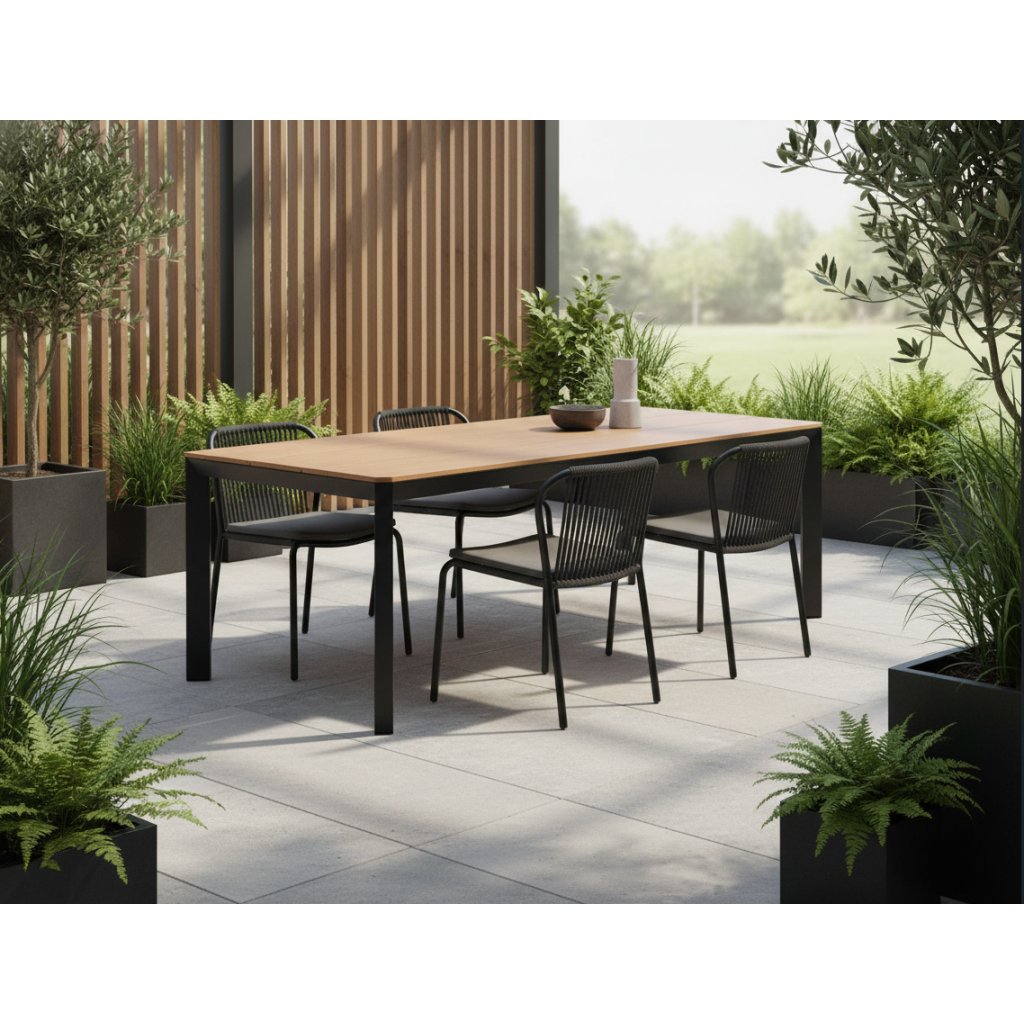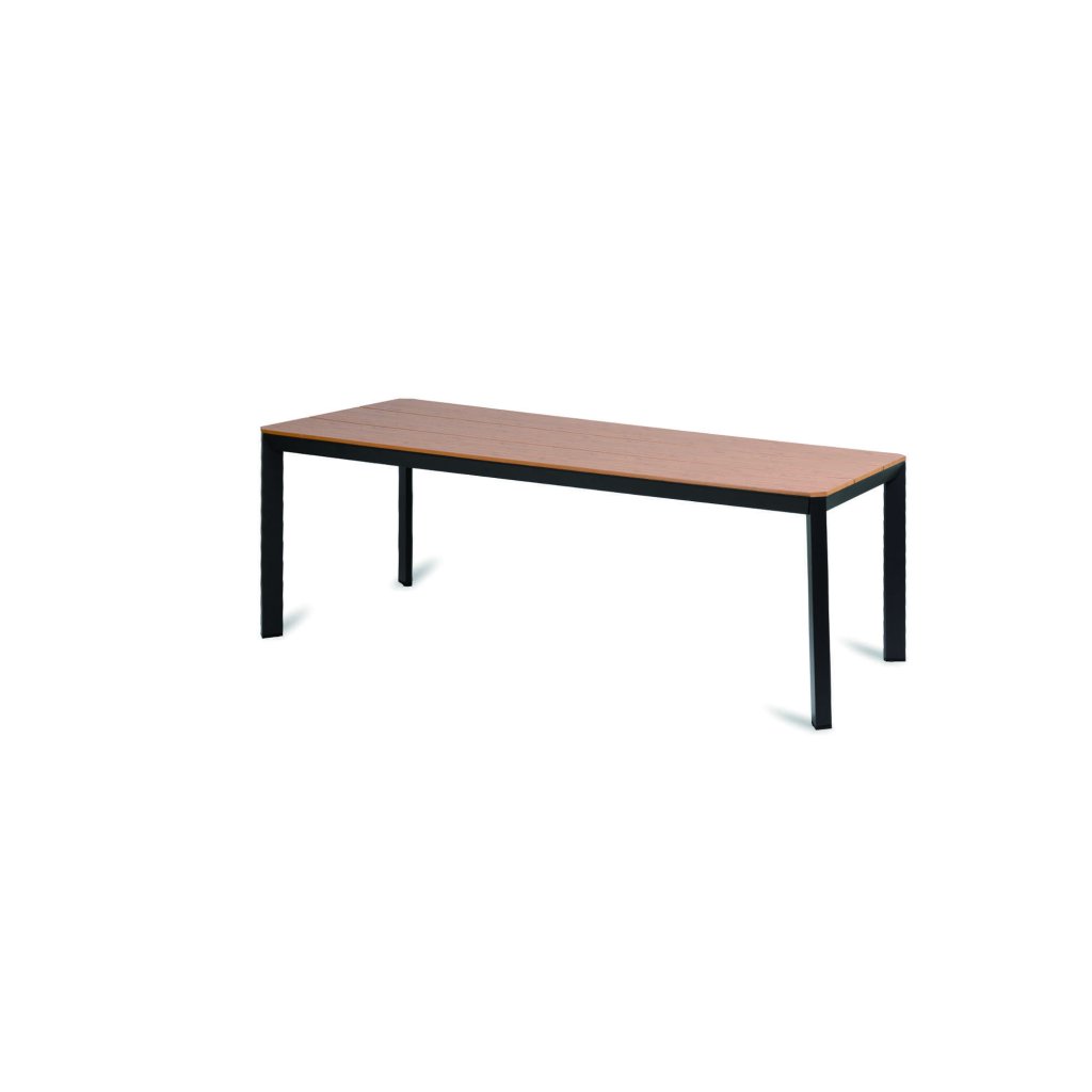 Konštrukcia z práškovo ošetreného hliníka zaručuje vysokú odolnosť voči korózii, poveternostným vplyvom aj mechanickému poškodeniu. Hliník je ľahký, pevný a vďaka práškovému nástreku si zachováva elegantný vzhľad aj po rokoch používania. Vrchná doska je vyrobená z dosky artwood, ktorá dodáva stolu prirodzený vzhľad, ktorý krásne zapadne do akéhokoľvek exteriéru.