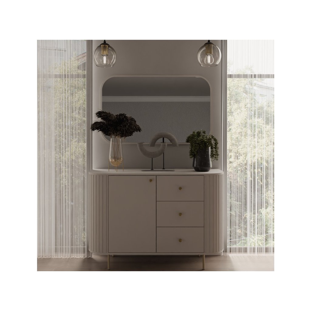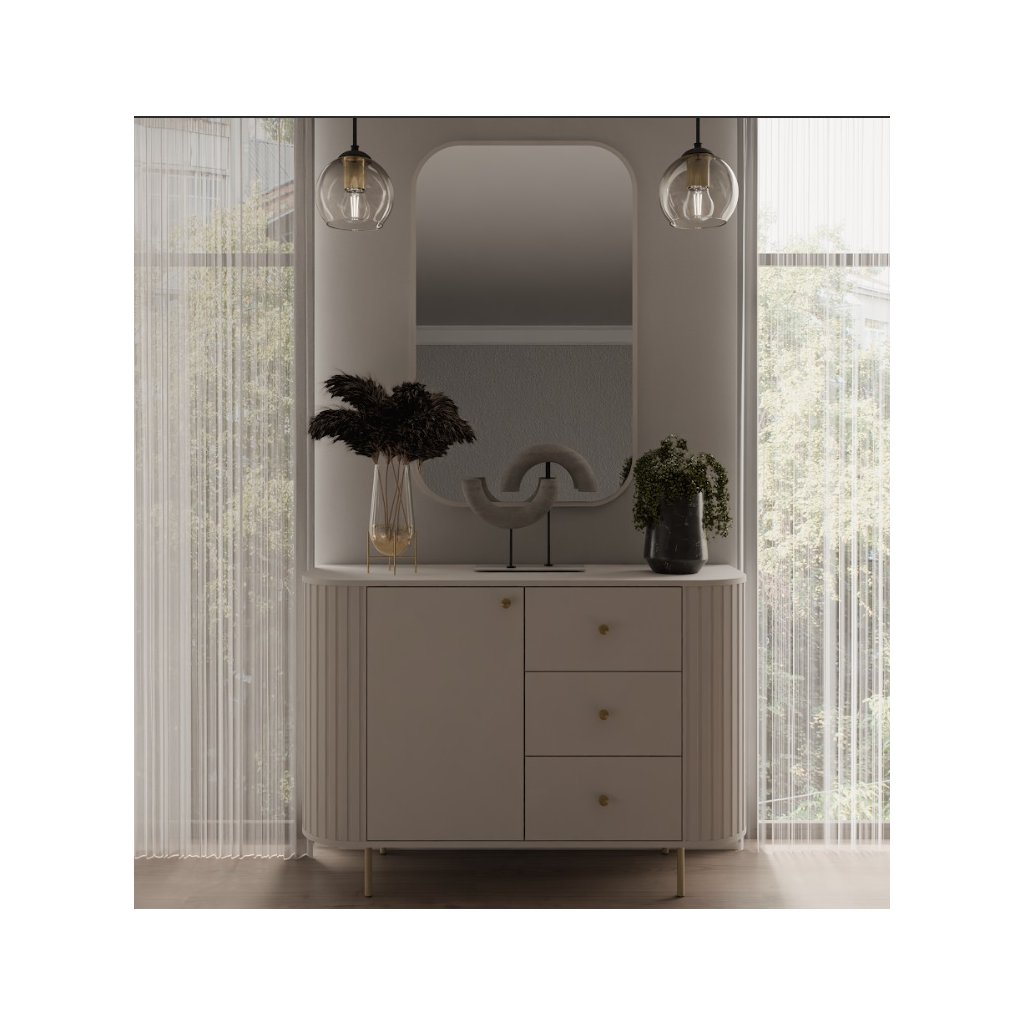 Kolekcia VAOLIA prináša minimalistický štýl zvýraznený precíznymi frézovanými detailmi, ktoré dodávajú interiéru nový, elegantný charakter. Tlmené, zemité odtiene pieskovo béžovej sú doplnené jemnými zlatými akcentmi, ktoré harmonicky narúšajú svetlé tóny a vnášajú do priestoru nádych sofistikovanosti. Zrkadlo VAOLIA 702 má moderný obdĺžnikový tvar a je určené na zavesenie na stenu, čo z neho robí praktický a štýlový doplnok vhodný do rôznych typov interiérov.